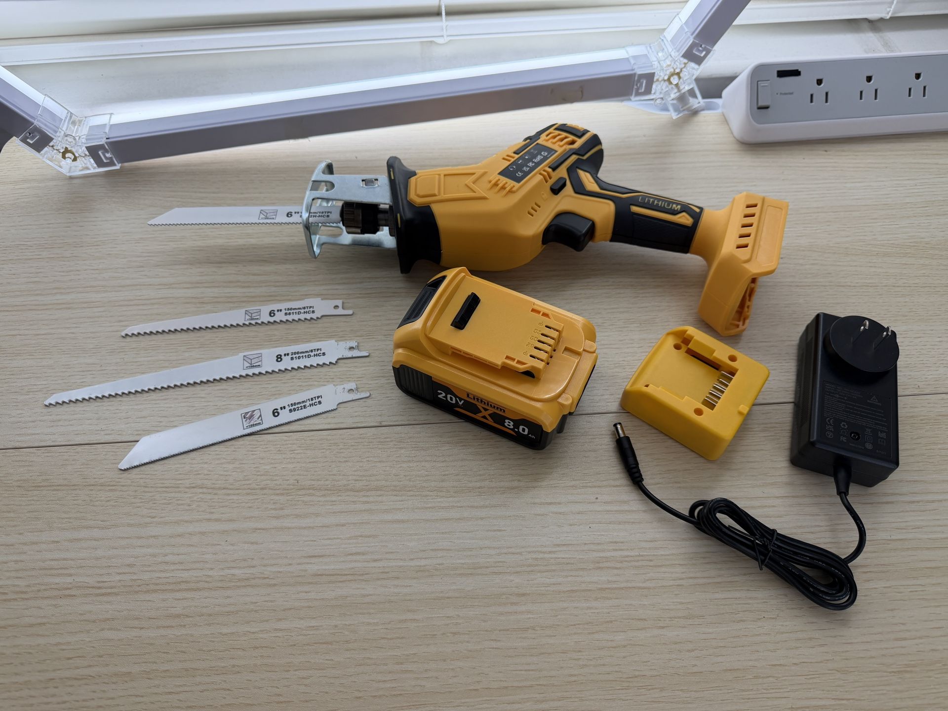 Brand New Cordless Reciprocating Saw for Dewalt 20V Battery, 150W Power Brush Reciprocating Saws, 0-3500 SPM Variable Speed, 4 Saw Blades Kit Cutting Tool for Wood Metal PVC (Battery Not Included). SKU350-S1 ***my husband does review videos for brands. He unboxes products and sometimes use for demonstration but we don’t use them. This is a brand new saw ***first come first serve ***please check out my other listings for more brand new products with very discounted prices