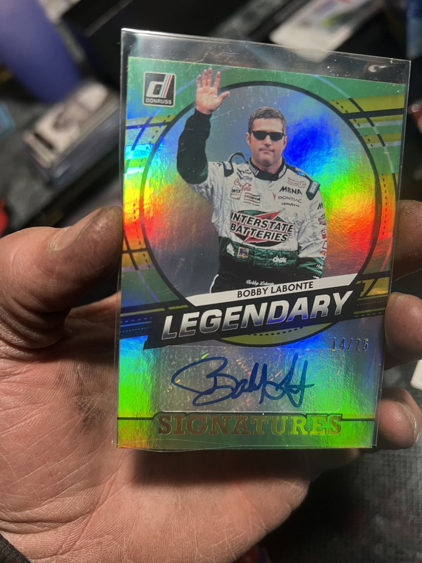2022 Panini Donnie’s Racing Legendary Signatures Bobby Labonte 14/25 Green/gold Holo