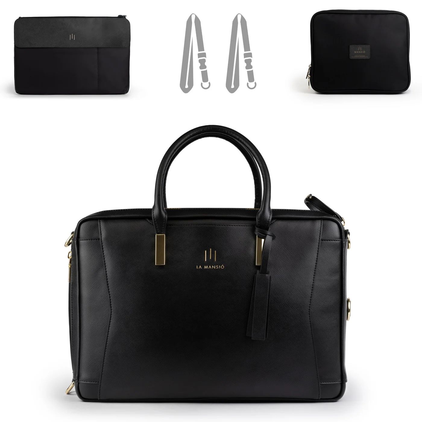 Adjustable strap, Detachable strap, Cross-body strap, Outer pockets, Inner pockets, Inner dividers, Laptop compartment