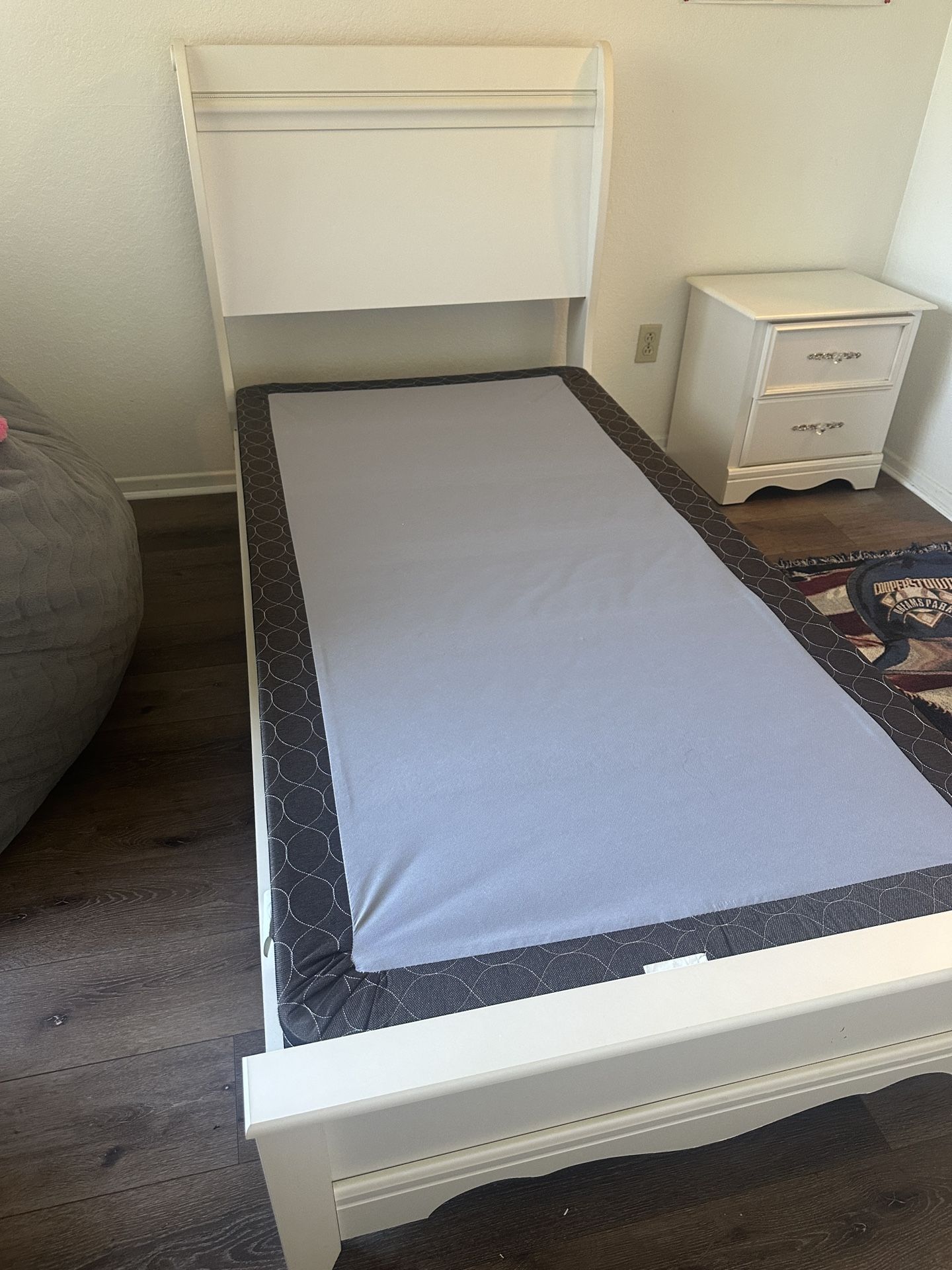 Includes bed, box spring, dresser, and nightstand.