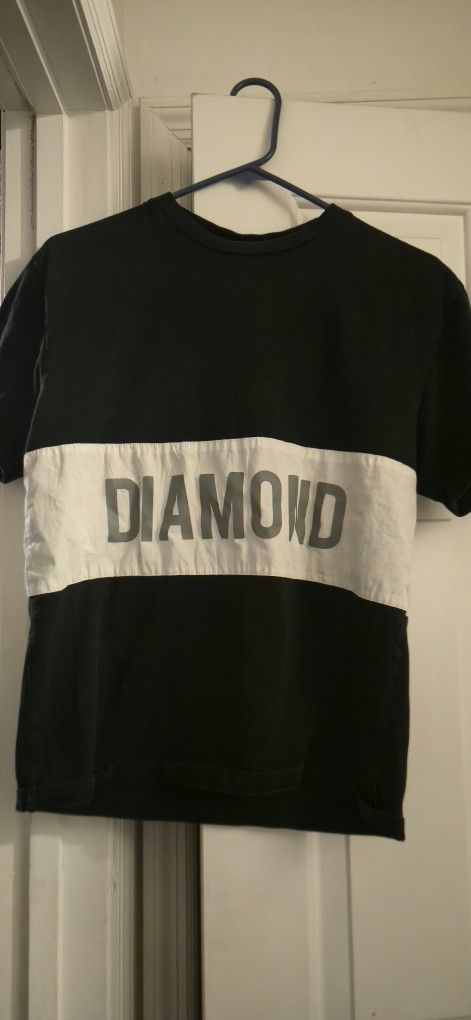 Brand: Diamond Supply Co. Model: Lafayette Paneled Knit Tee Colorway: Black body with white (or very light) contrasting panel / knit section (black/white) Size: Small (S) Material: 100% cotton (jersey knit) — many similar tees from the brand use 100 % cotton. Cut & Fit: Regular fit, short sleeves, crew neck.