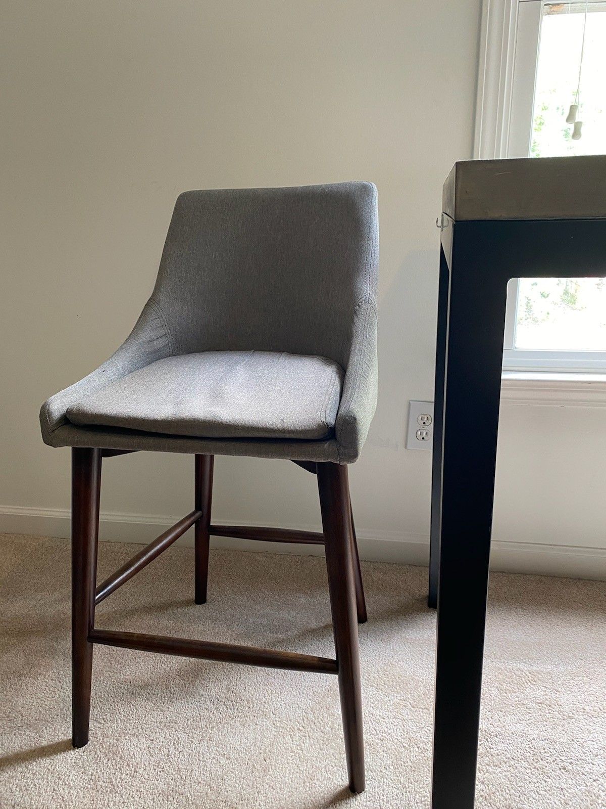Grey cushions that can be washed. Solid wood legs with dark stain. 2 years old. Smoke free home.