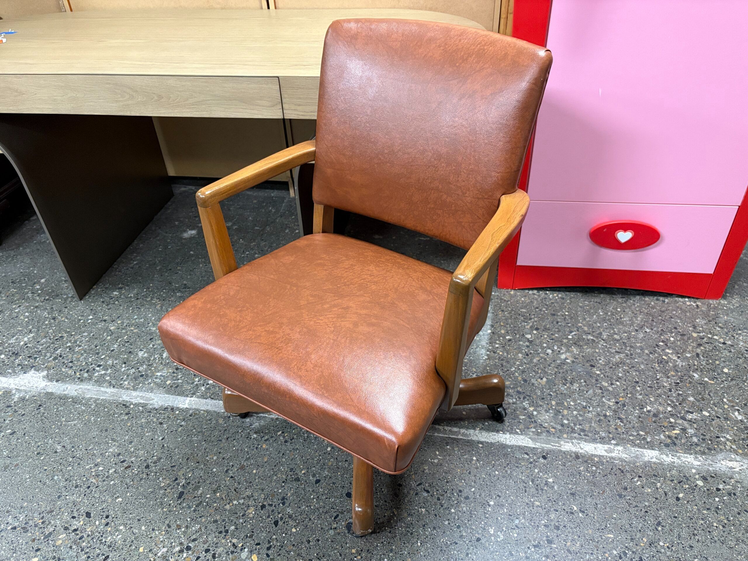 JOHNSON CHAIR CO. Vintage Caramel Banker Chair w/ Light Brown Wood Frame