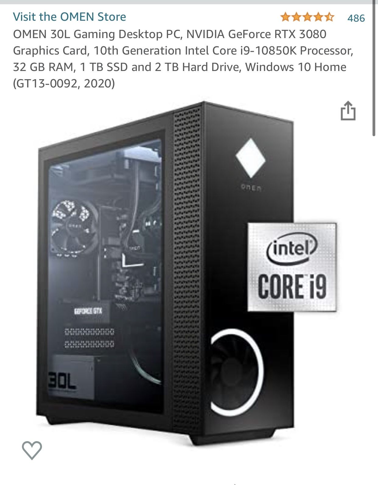 OMEN 30L Gaming Desktop PC, NVIDIA GeForce RTX 3080 Graphics Card, 10th Generation Intel Core i9-10850K Processor, 32 GB RAM, 1 TB SSD and 2 TB Hard D