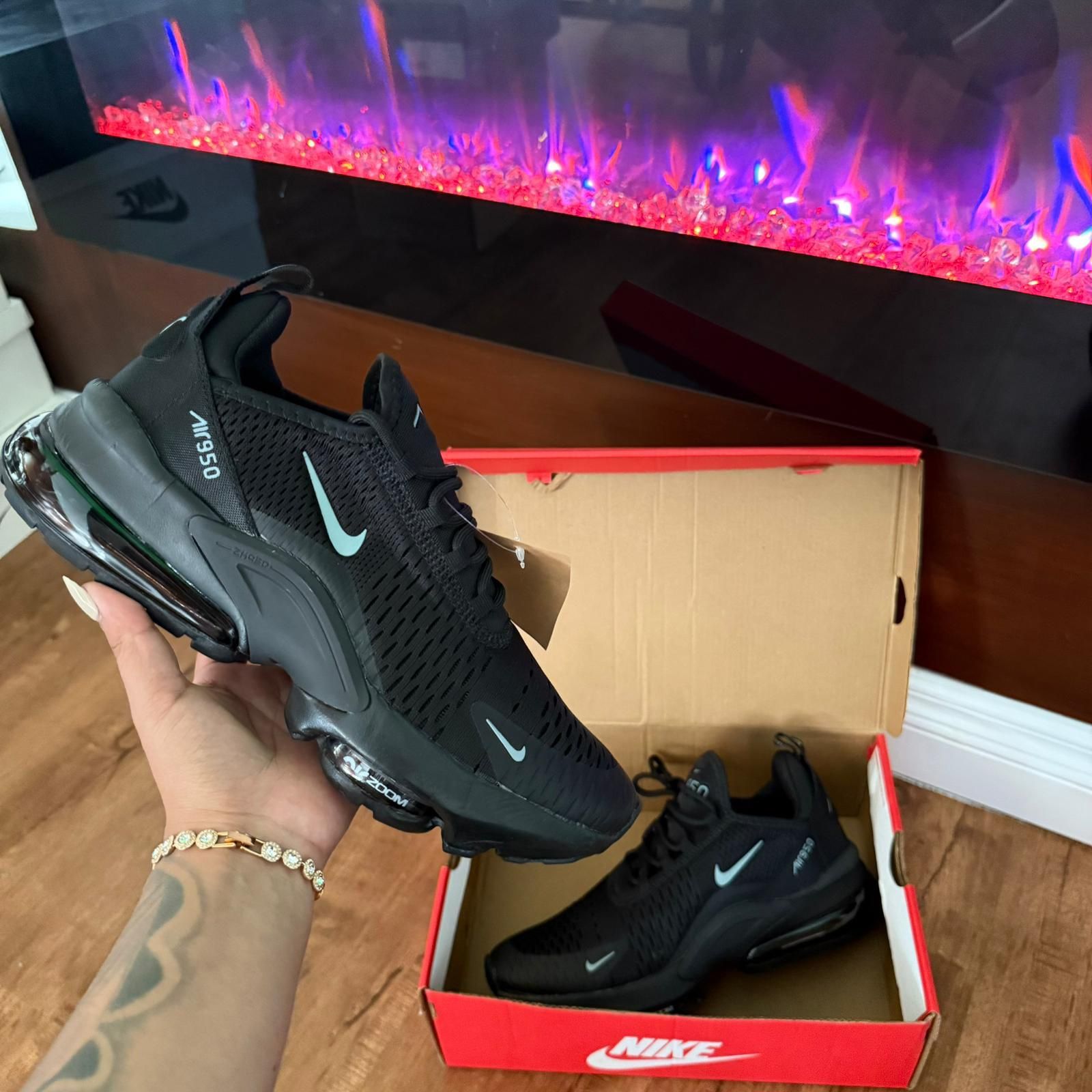 π¨ Available Now! π¨ π₯ Nike Air Max 270 β Black with Light Blue accents π Menβs Sizes: 9, 9.5 & 10 β Brand New in Box π¨ Ultra comfort with the big