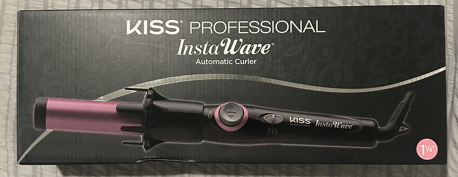 Give your hair a "KISS" with the new Kiss Professional InstaWave. This one is a Rose Quartz Pink - Pearl Ceramic barrel (1 - 1. 1/4 inch barrel size It is going to be the easiest way to curl your hair without inverting your arm, wrist or body and give you the best curls that will last all day. Every hair type, texture, length and ethnicity can use the KISS Pro Instawave Automatic Curler. It creates a variety of styles - Tight Curls, Beachy Waves, Bouncy and Voluminous Curls, or Lift & Volume. Tame frizz and humidity or glam yourself up for the holidays.