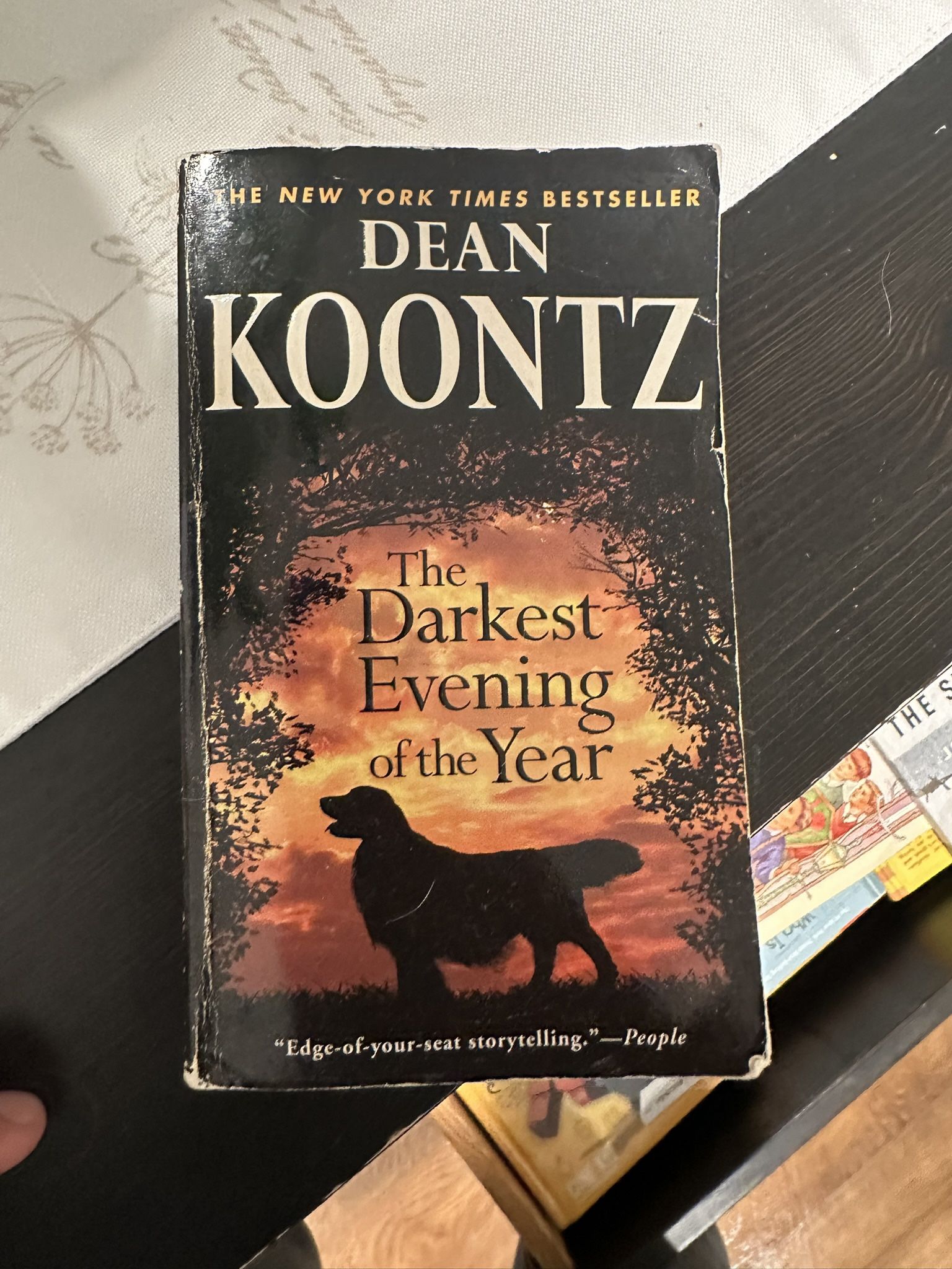 Condition: Good Dean Koontz's The Darkest Evening of the Year is a suspense novel centered on Amy Redwing, a selfless dog rescuer who forms an intense, almost supernatural bond with a golden retriever named Nickie, only to find their idyllic life threatened by shadowy figures from Amy's past, leading to a deadly game of cat-and-mouse involving psychopaths and home invasions, testing loyalty and love as they fight for survival against overwhelming odds.
