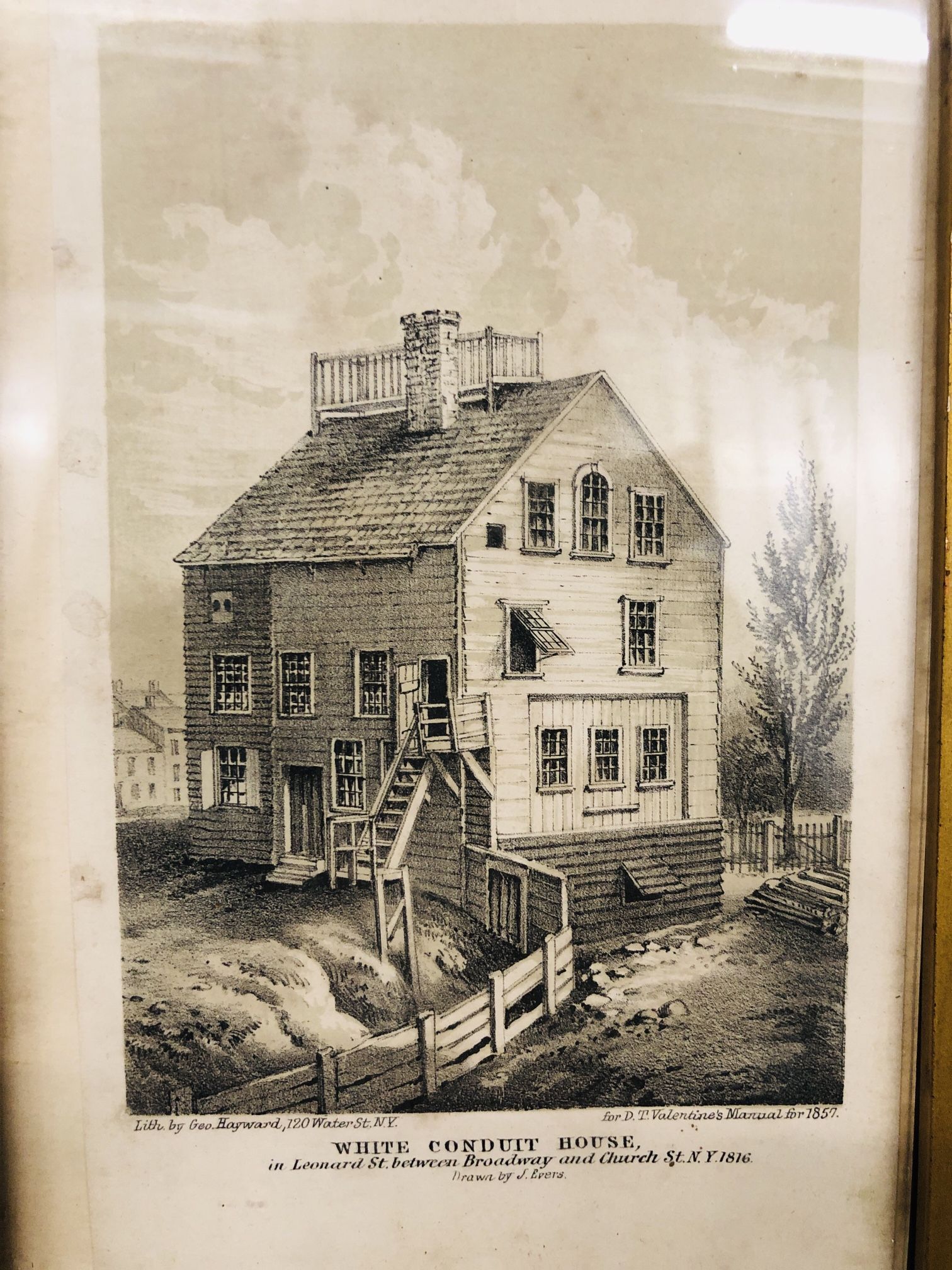 Vintage 1851 Lithography Of New York White Conduit House Between Broad Way And Church St