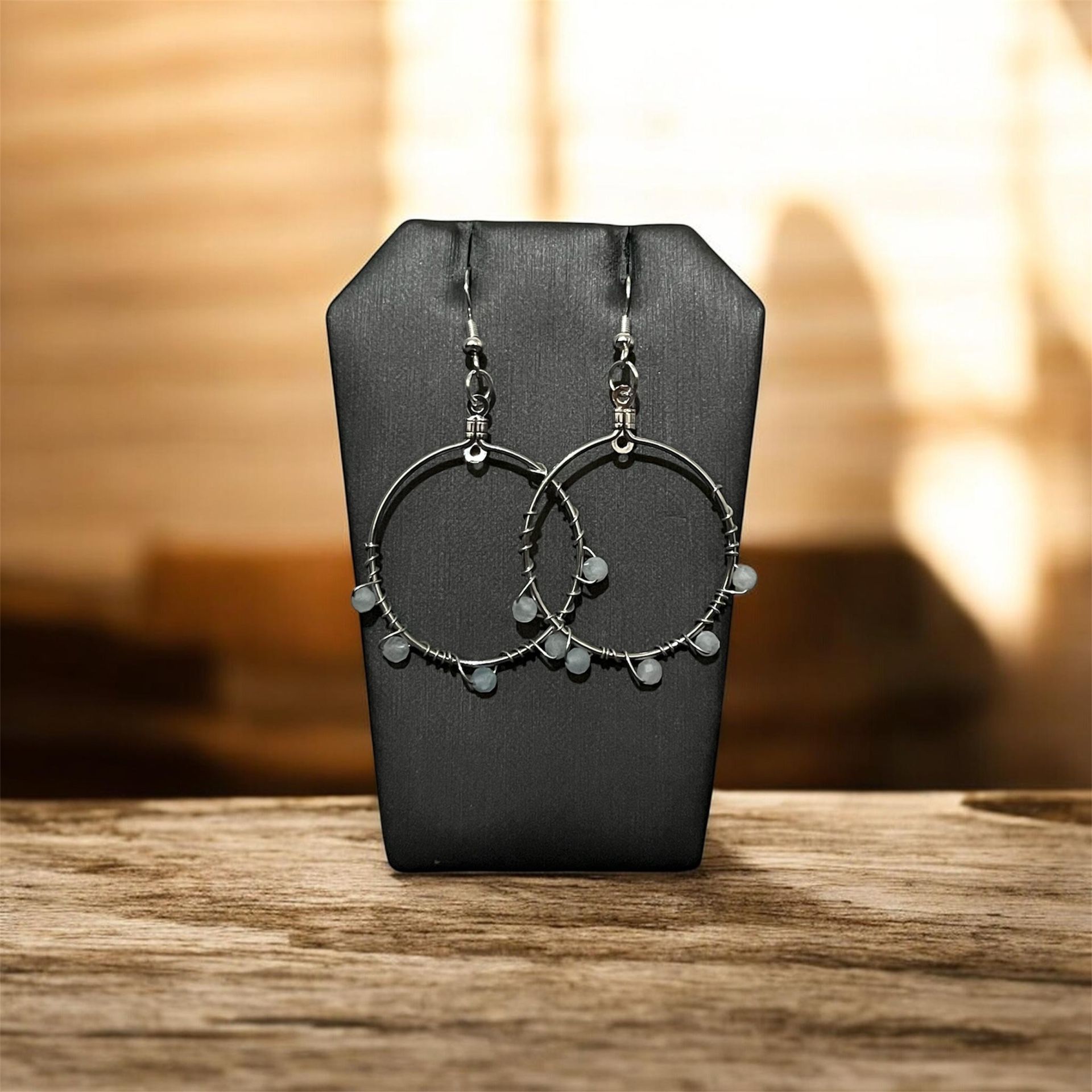 Earrings Aquamarine Stone Wire Wrapped Hoop 925 Silver Plated