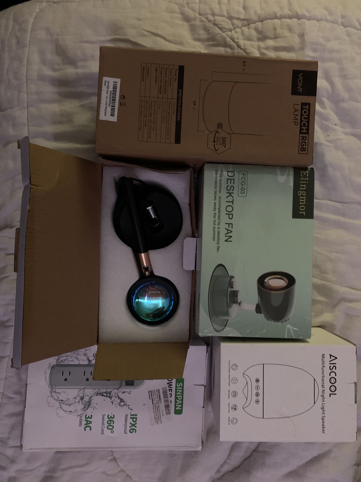 The whole bundle is $15 Desk top lamp $5 Touch lamp RGB $5 Sun lamp $5 Night night speaker $5 Power cord $5 $10 dollars off if you buy the whole bundle
