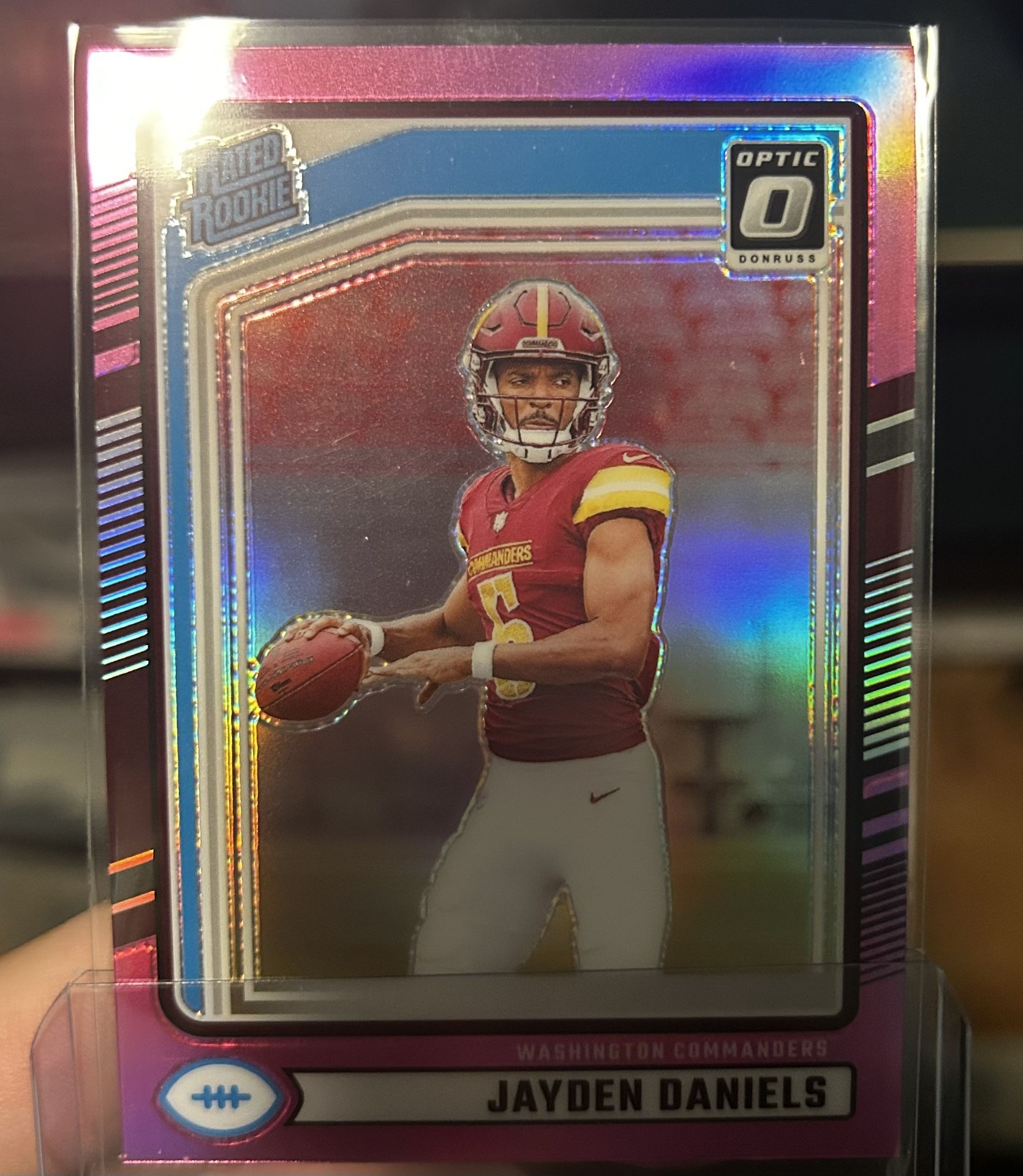 Jayden Daniels Rated Rookie Optic Preview Pink Prizm #389 (RC)