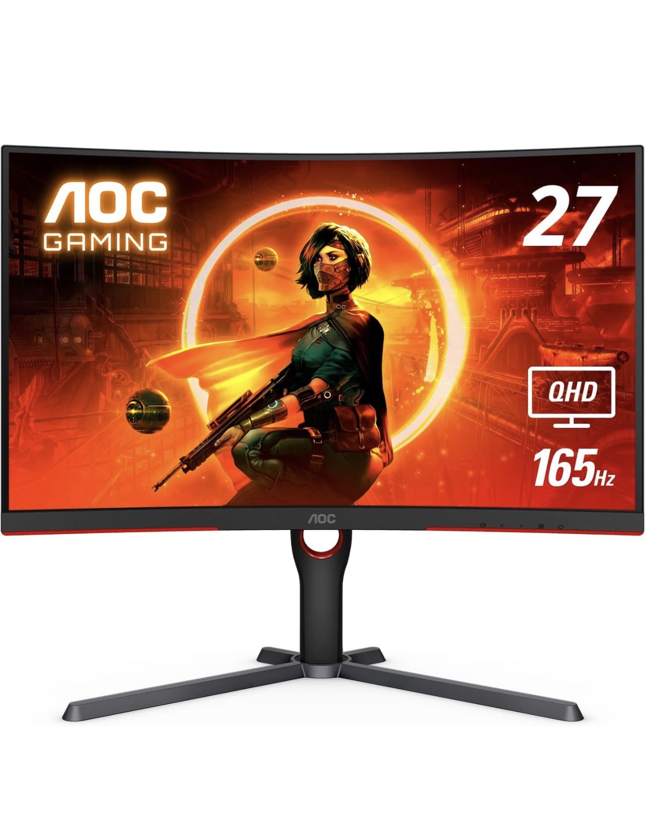 BRAND NEW AOC GAMING CQ27G3S Frameless Curved Gaming Monitor, QHD 2K 2560x1440, 1000R VA, 165Hz 1ms, FreeSync Premium ,Black