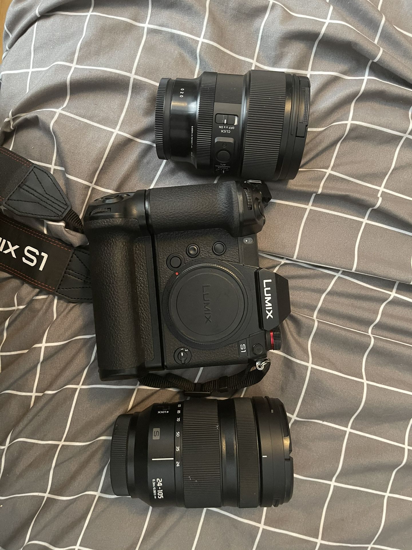 LUMIX S1 mint condition Battery grip mint condition LUMIX 25-105mm f4 lens mint condition 85mm f1.4 Leica art lens Godox speed light 36inch westcott rapid box octa diffuser Umbrella diffuser 78 inch mount for light Tripod