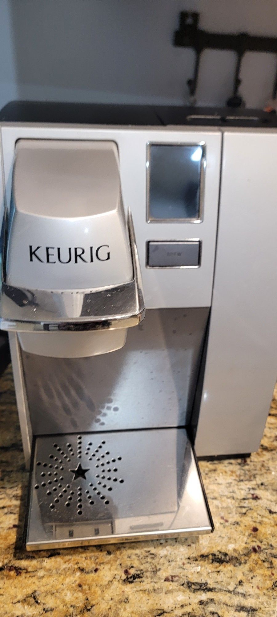 Great condition Keurig coffee maker. I have 3 coffee makers and dont need this one lol. This is a 90oz reservoir, The features a 16oz coffee mug. Great machine i love it. It a great addition to your stainless steel appliances in your kitchen or for a gift to a coffee lover. Lol