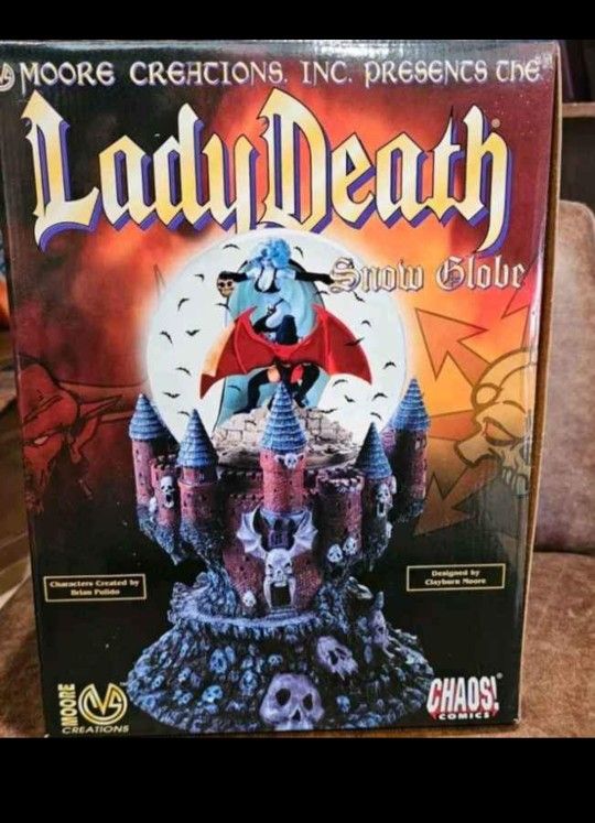 Lady Death snow globe, very large purchased new in the 90's. Never taken out of box. Also has a windup music box that plays Ride of the Valkyries $100 or BO.