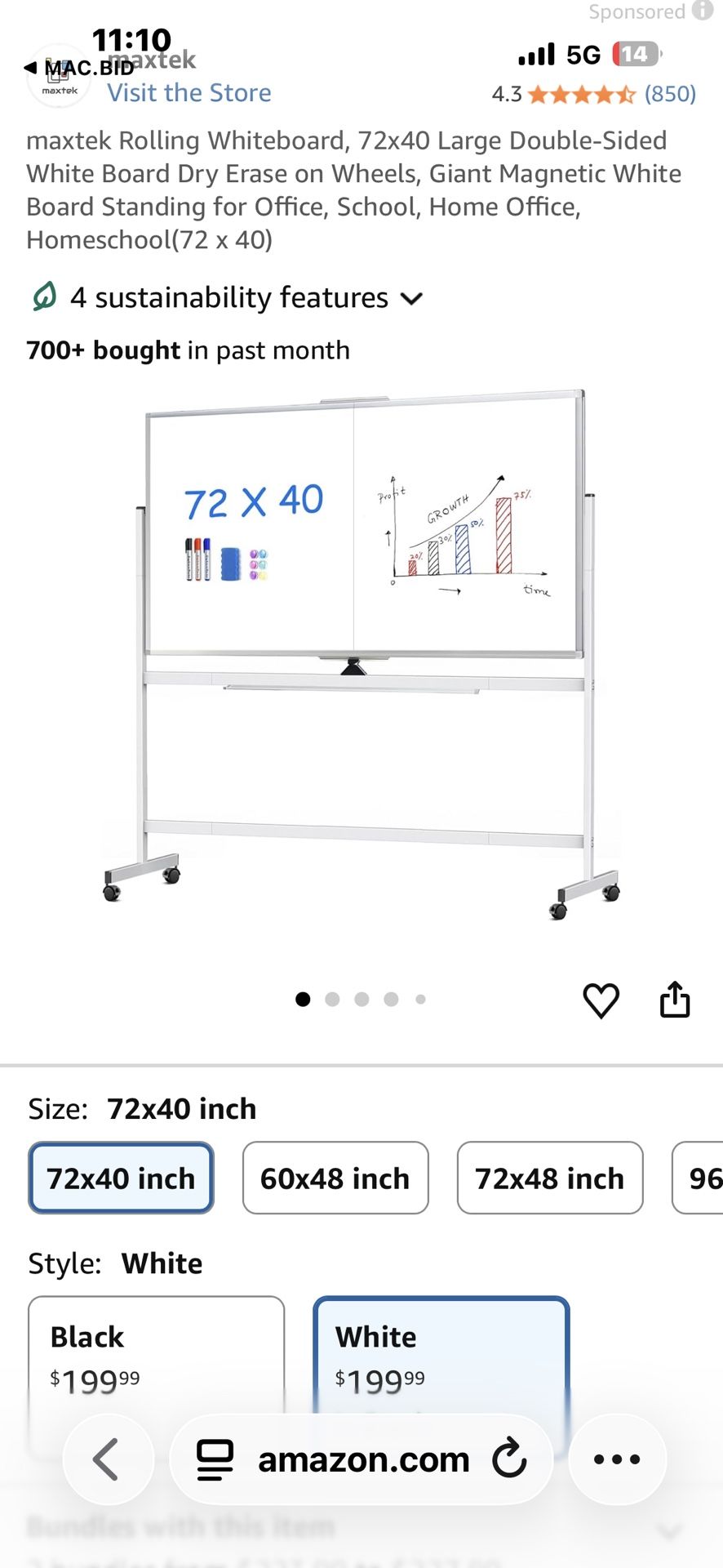 maxtek Rolling Whiteboard, 72x40 Large Double-Sided White Board Dry Erase on Wheels, Giant Magnetic White Board Standing for Office, School, Home Office, Homeschool(72 x 40)