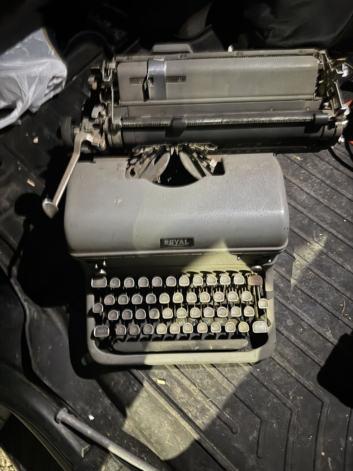 The 1940's Royal Quiet Deluxe Vintage Typewriter is a classic piece of history, featuring a sturdy steel construction and a stylish Bakelite handle. This manual typewriter, made in the United States by the renowned brand Royal, comes with its original case, adding to its charm as a vintage collectible. With its nostalgic appeal and functional design, this typewriter is perfect for vintage enthusiasts or those who appreciate the craftsmanship of bygone eras. This is being sold as is since a few of the keys are sticking and other than needing a new ribbon seems to be in nice condition. The case is in ruff shape and the lock is broken but will still store the typewriter. Place your bid now before this beautiful piece of history is gone forever.