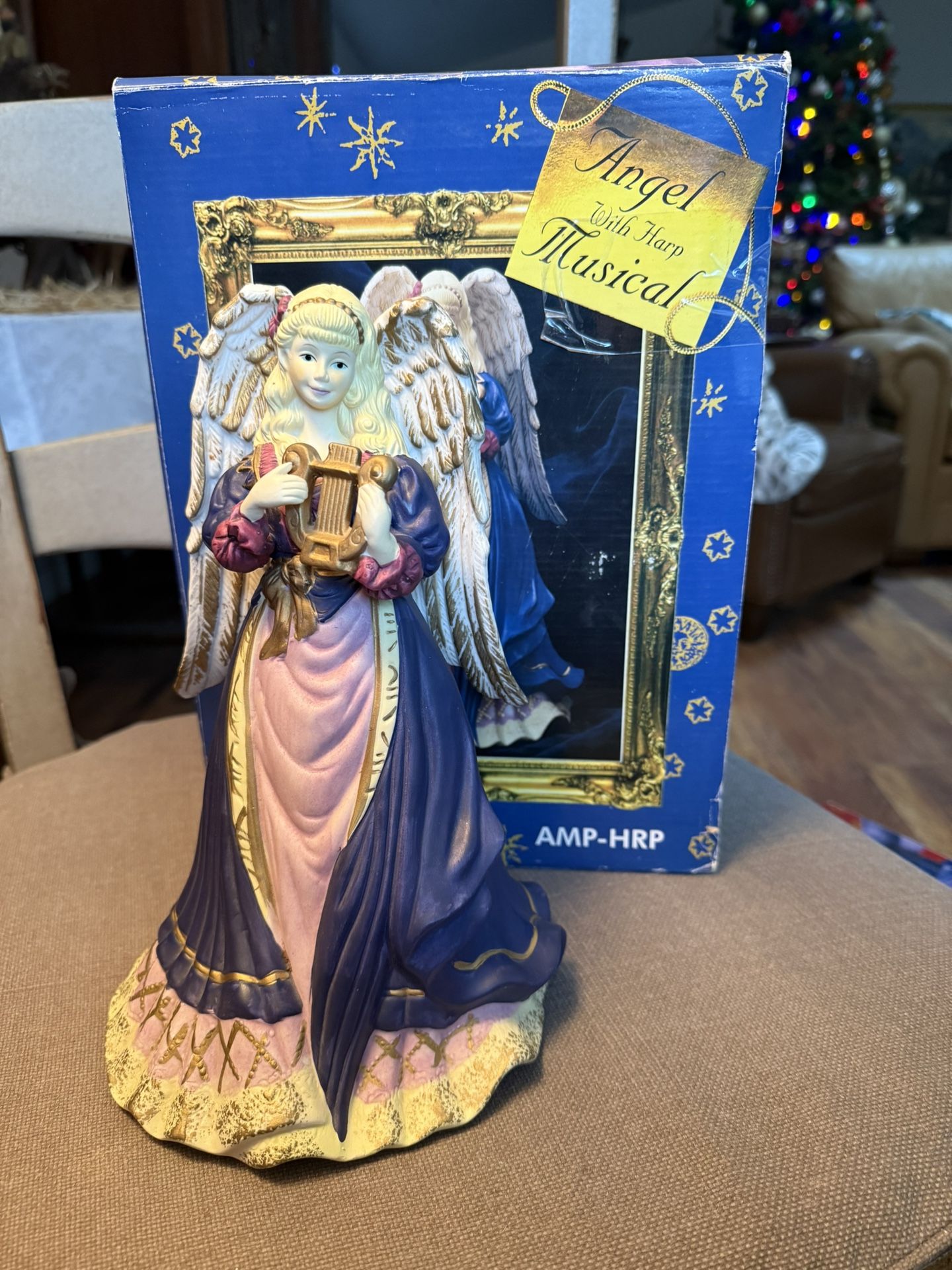 Beautiful, musical box approximately 11 inches tall porcelain or ceramic hand painted one of two check my site. This one’s playing a harp.