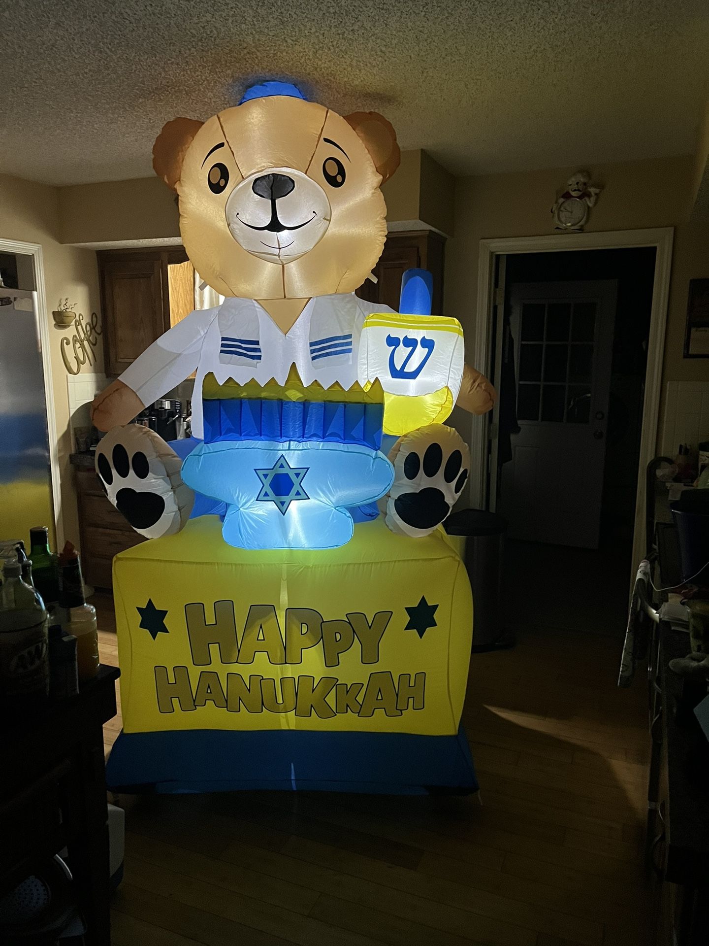 New extra large happy hanukah blow up. It’s a little over 8 feet tall and 5 wide. Big Fast pump inflates in minutes. Great decoration for the holiday season. Rare find