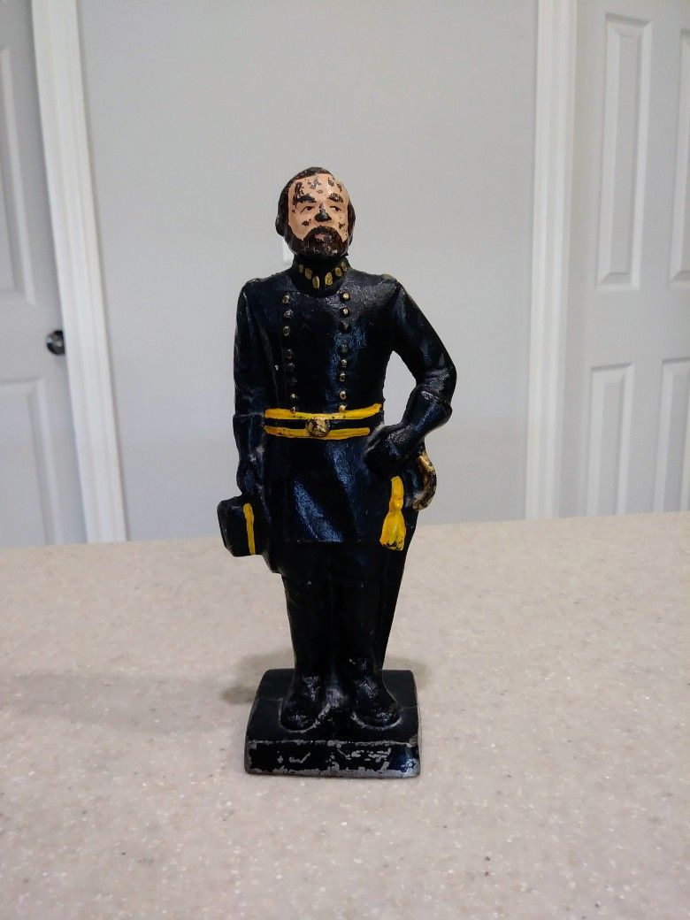Antique hand painted cast iron civil war General Grant bookend-door stop 7 1/2" tall