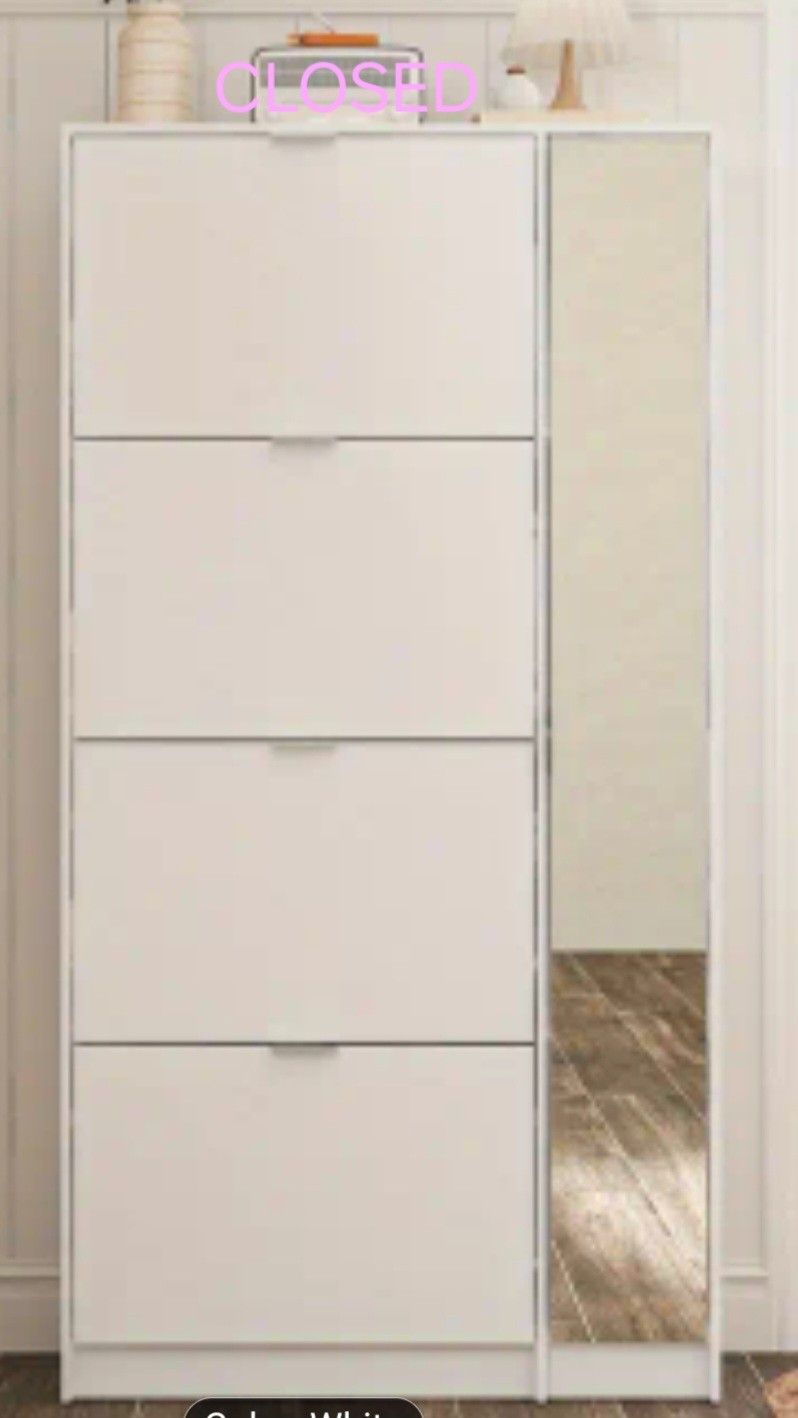 White shoe armoire with body mirror in great condition