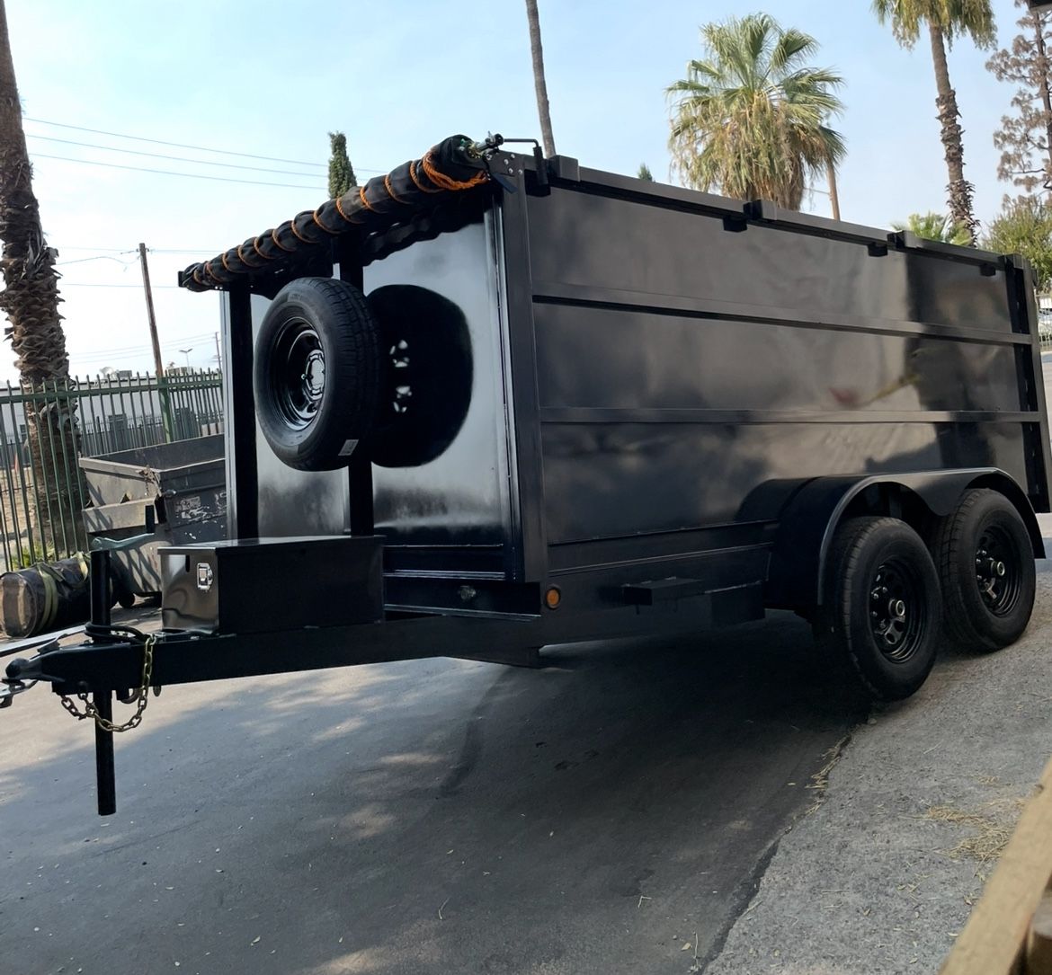 TARP and SPARE INCLUDED Brand new dump trailer 2026 8x12x4 2 axles of 6000lbs each 2 ejes de 6000lbs cada uno 12000 Ram Diamond plate with hydraulic lift Electric Brakes 1 year warranty from date of purchase! Buying straight from the manufacture, avoid extra fees Tarps and spare tires are available upon request Message me for more information Hablo español Ball size 2 5/16 Located in Bloomington ca Me puedes llamar o mandarme un mensaje por mas información