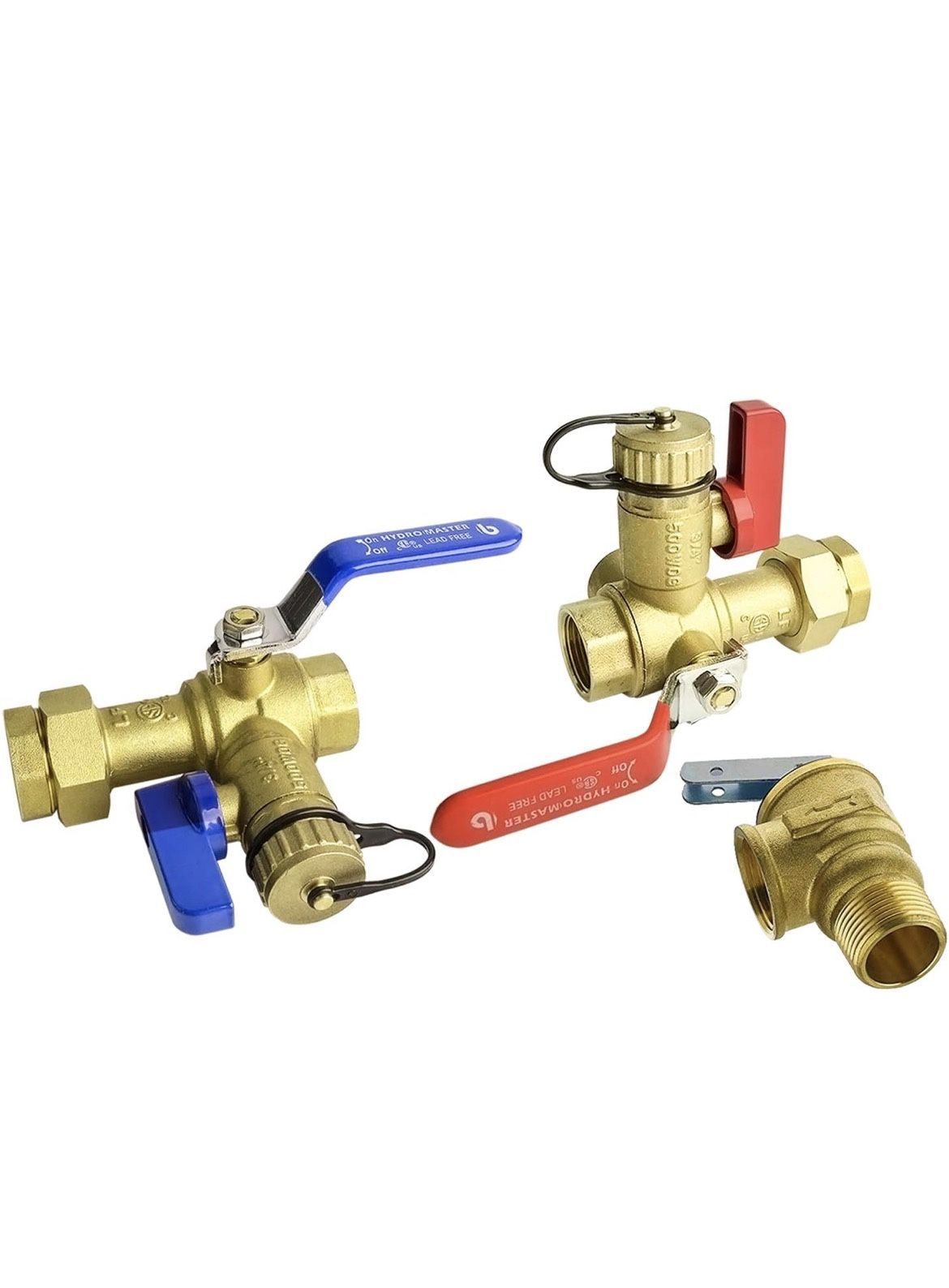HYDRO MASTER Tankless Water Heater Service Valve Kit with Pressure Relief Valve 3/4-Inch IPS Isolator Clean Brass