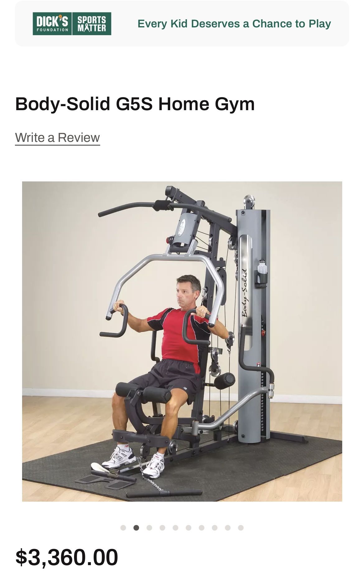Body Solid. Great shape. $3,360 new. 6 Stations including: Chest Press /Mid Row Station, Lat Pulldown /High Pulley Station, Ab Crunch /Mid Pulley Station, Perfect Pectoral Station, Leg Extension /Leg Curl Station, Seated Row /Low Pulley Station Chest, incline, shoulder press, mid row and leg developer stations incorporate the friction-free SmoothGlide Bearing System® Self-aligning, contoured leg extension cuffs High-density, top grade DuraFirm™ pads with lumbar support 210 lb. (95kg) weight stack Flip-up seated row foot brace plate stabilizes your body when using heavy resistance Tough, durable, electro-statically applied powder coat finish Easy to use, space saving, no-cable-change design