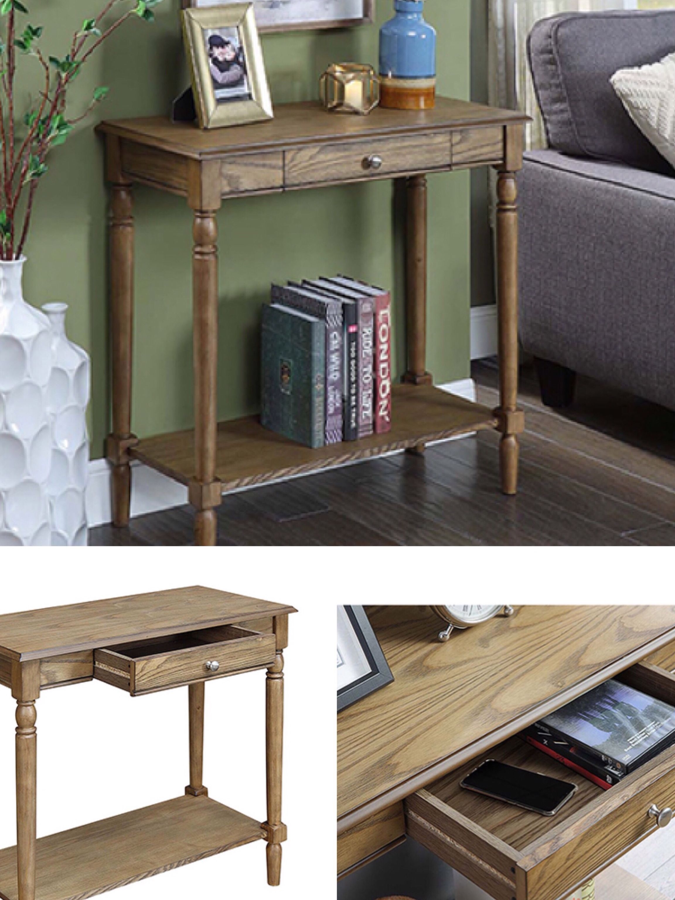 Brand New in Box. Retail for $160+taxes. Color: Driftwood. Features One Drawer and One Shelf. Easy Assembly, Tools Provided. Also have the matching End Tables, please ask for price If you are interested. Dimensions: 14.00"L x 31.50"W x 30.00"H
