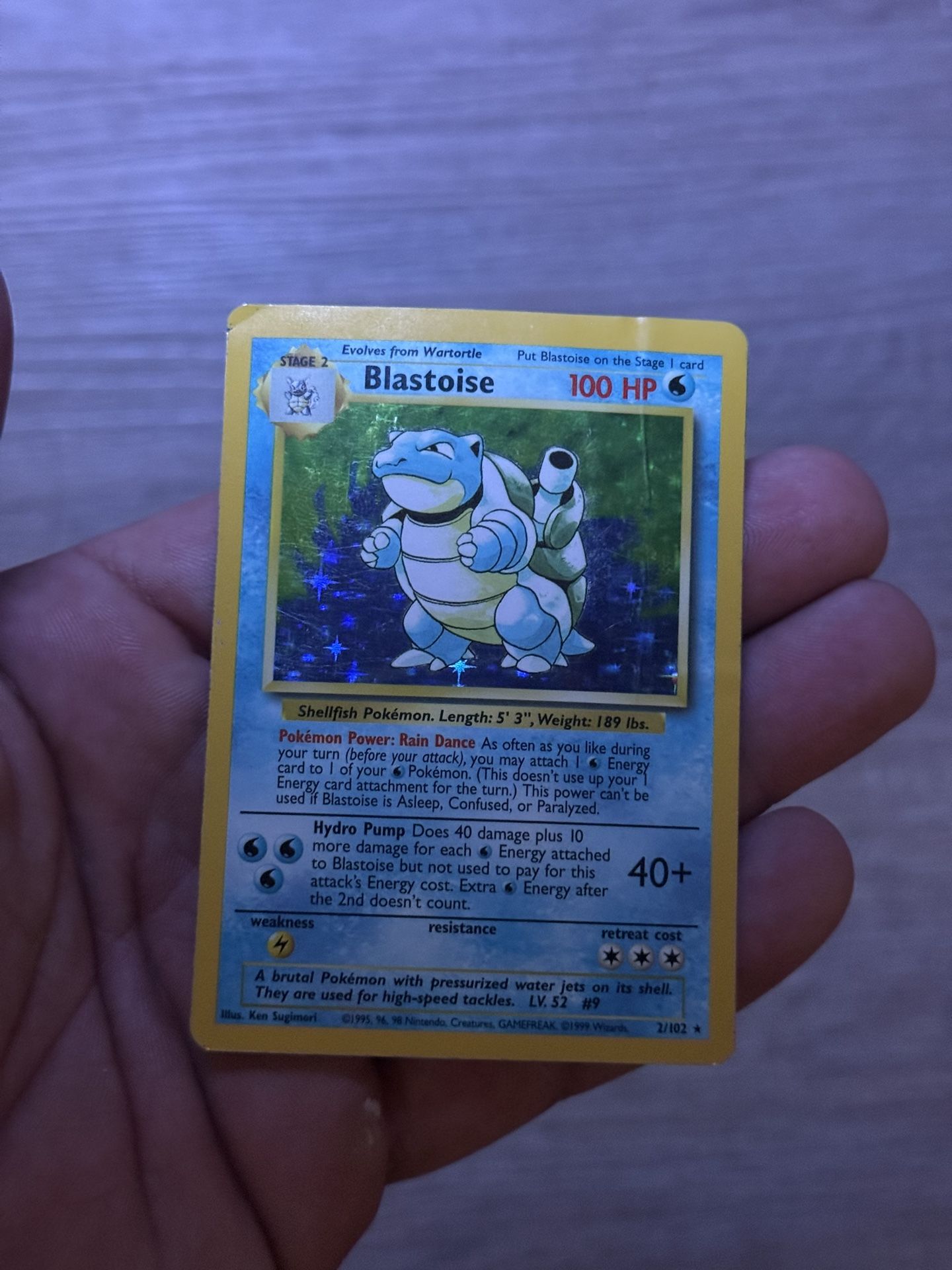 Pokemon Blastoise Base Set . It’s is HP. Has crease on back and front