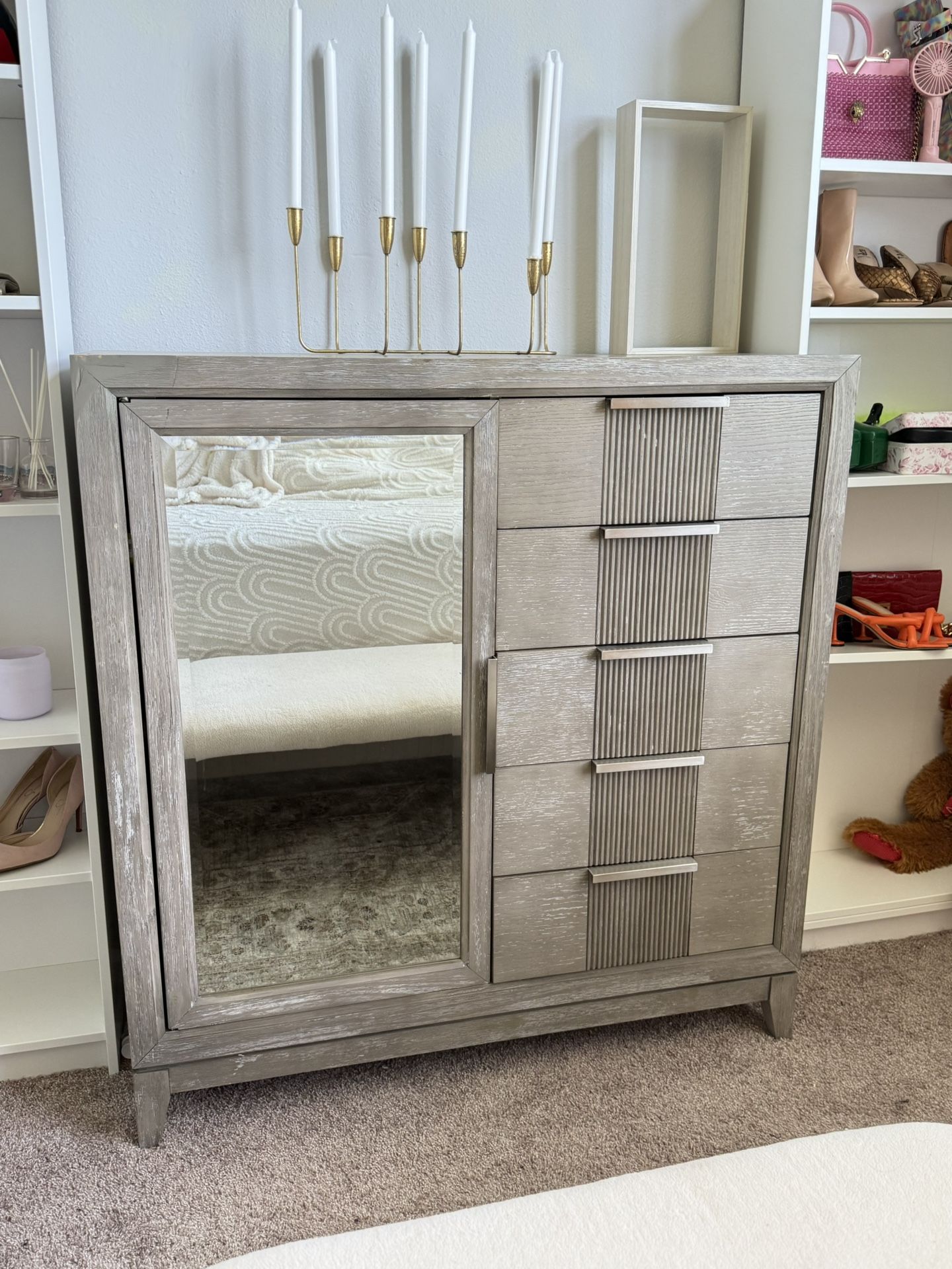 This beautiful and unique masterpiece is all that it seems! My husband and I just need something bigger, but I hate to let her go. She’s in great condition, but please keep in mind. It’s heavy. There is drawers behind the mirror door. Just the same as on the other side. $390 obo 48"w"w x 20"d"d x 51"h"h Located in Northlake near Lowe’s .