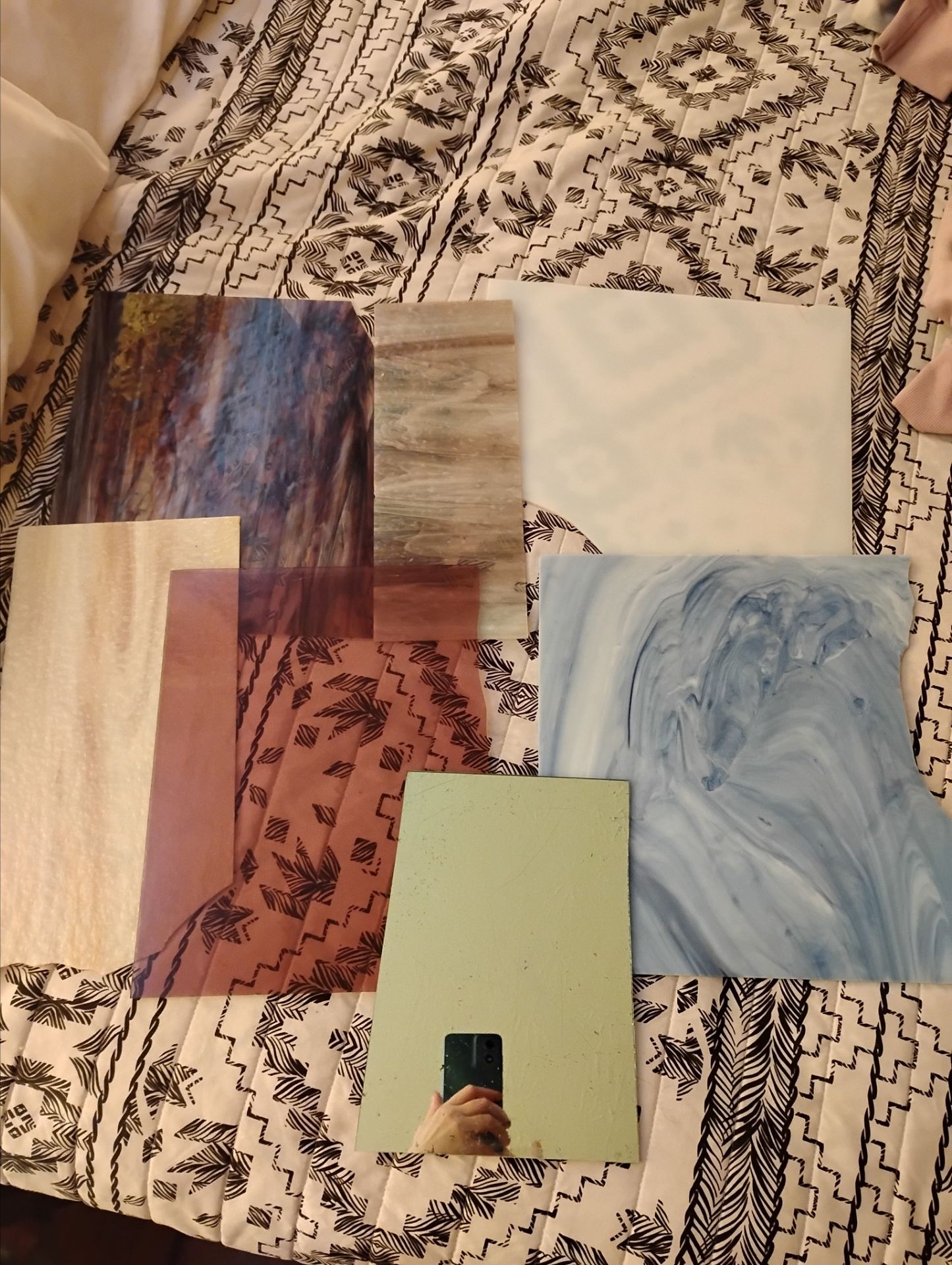 Gorgeous pieces of glass, browns are very old, purple, blue, mirror