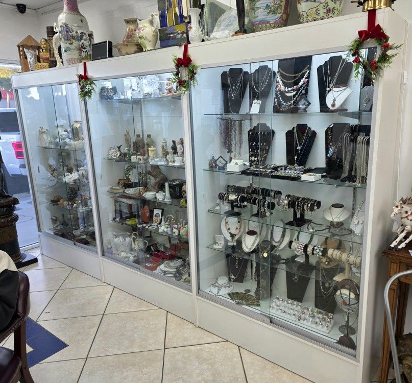 3 Large Lighted Display Cases Each Measuring 78 X 48 X 18 Inches