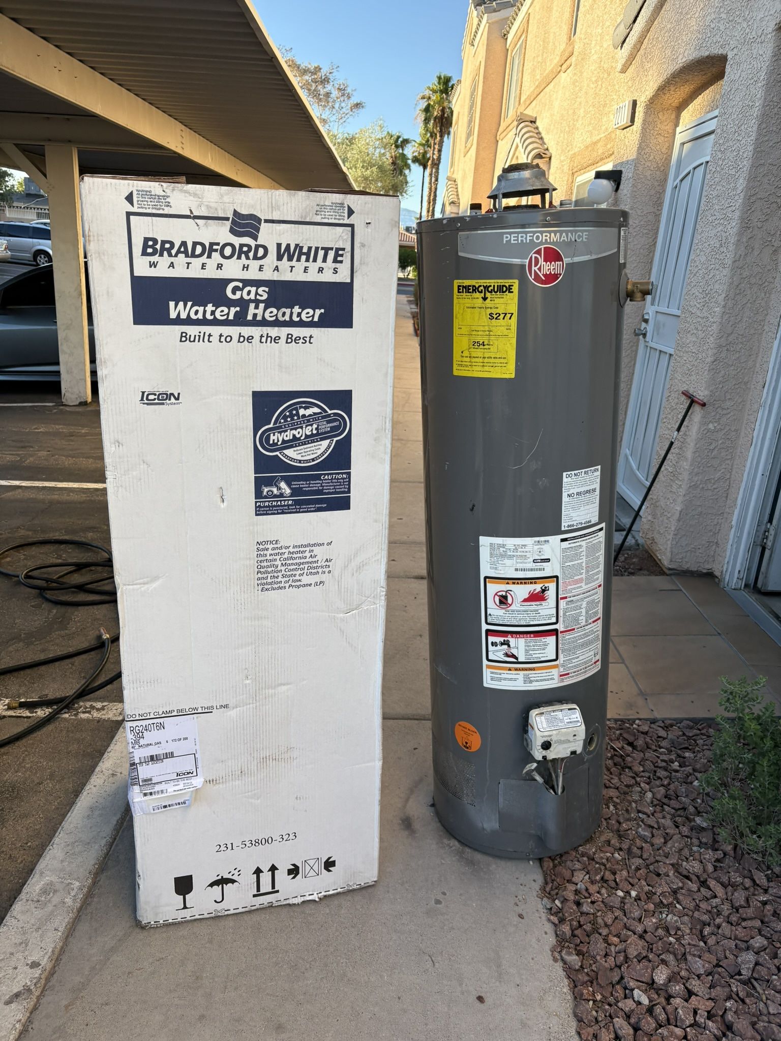 I'm selling a water heater with installation, 50-40-30 and 75, gas and electric, guaranteed work and with a 6-year warranty on the water heater. Write me for more information.