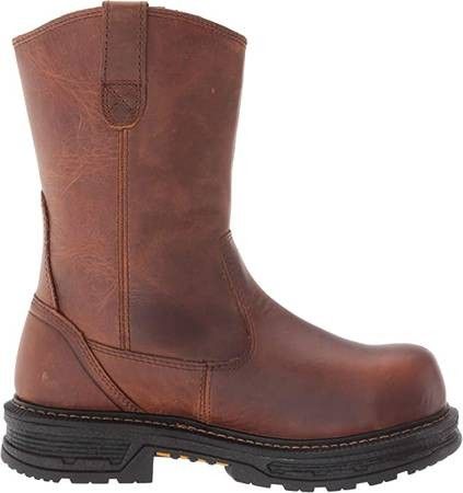 NEW size 9 Wide Wolverine Men Wellington Work Boot WATERPROOF Hellcat UltraSpring 10" CarbonMAX Product Details: Fabric Type 100% Leather: Sole Material Rubber:Shaft Height Calf High: Shaft Circumference 14 About this Item Premium waterproof full-grain leather upper. Breathable waterproof membrane with moisture wicking mesh lining Removable Ortholite UltraLite full-cushioned footbed is light without sacrificing comfort Revolutionary UltraSpring high rebound ETPU midsole provides energized ride. Rubber lug outsole grips the ground Time-tested Goodyear Welt construction. Nylon shank adds extra strength ASTM F2413-18 M I/75 C/75 EH rated composite-toe 52one1121