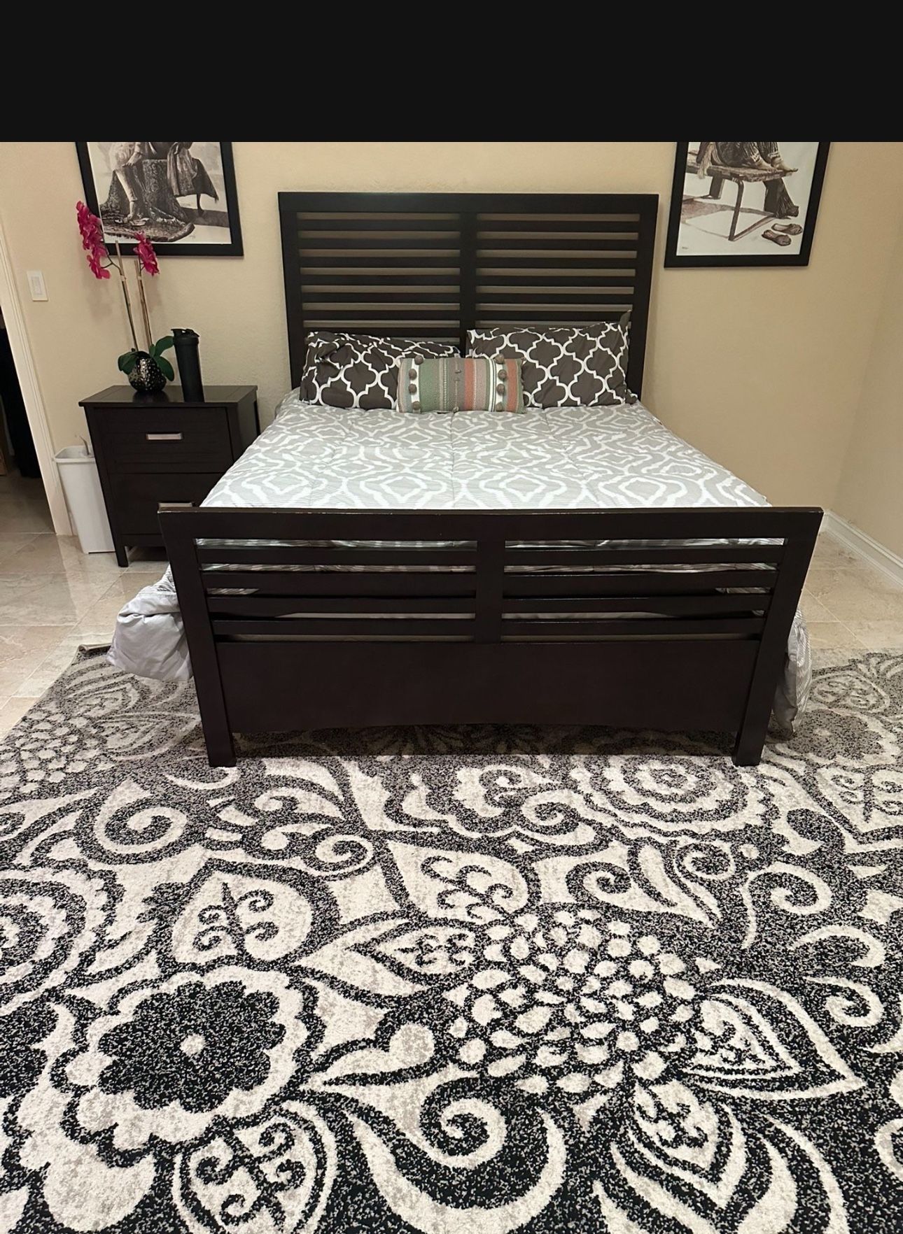 Queen Bed , 1 Side Table, Mattress Amd Carpet