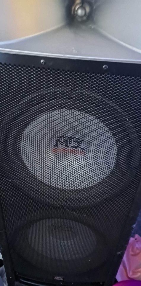 MTX THUNDER PRO AUDIO EACH CABINET IS VENTED AT BOTTOM HAS TWO 12" WOOFERS WITH HORN EACH OF THESE SPEAKERS 225WATTS EACH SOUND GOOD IN ANY HOME OR PROFESSIONAL SET UP USE AS MAINS OR MONITOR. Each speaker has two 12's and a horn. Vented boxes at bottom 225 watts each TWO CONNECTOR OPTIONS: REGULAR SPEAKER WIRE QUARTER INCH CABLE Not too many people have these to buy new before tax these are over $600 the sound and quality is MTX standard. Hurry before I change my mind on selling these save yourself 50% only asking $240 Cash or trade Chevy R20 drive shaft, motorcycl, parts, gear, leather, chevy, Toyota, Honda, yamaha, harley parts, tools, dewalt batteries, old coins and bills, powered mixer, subs, jbl, car audio, loud stuff outdoor stuff or anything of equal or greater value just ask Offer up not lowball downgraded time wasters. Exceeds offerups shipping requirements well have to contact them for more appropriate lable o make sure no snags in process they will want buyers address to figure out price or update the current lable in