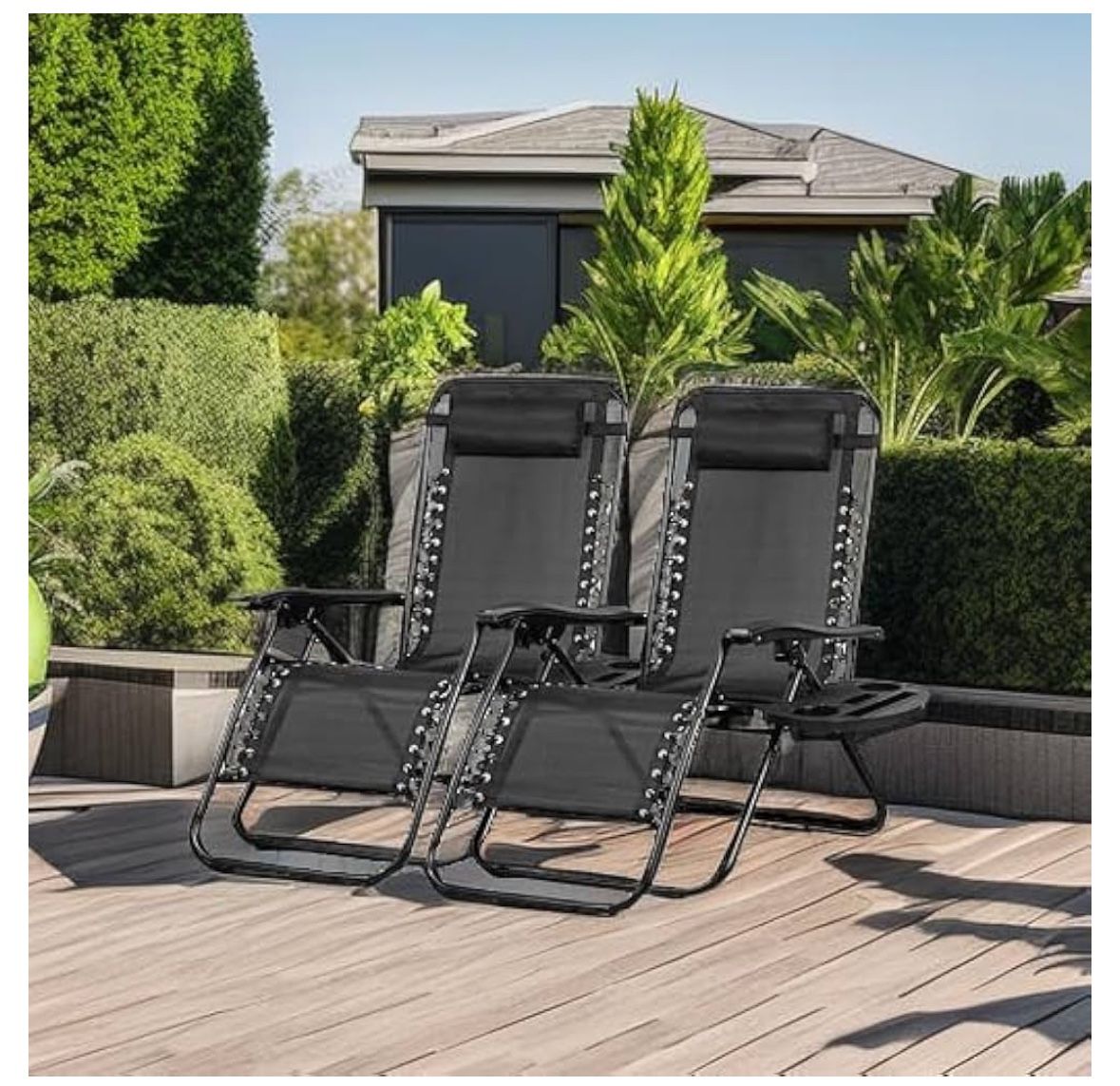 Set of 2 Relaxing Recliners Patio Chairs Adjustable Steel Mesh Zero Gravity Lounge Chair Beach Chairs with Pillow and Cup Holder Black. May have blemishes or small crack in plastic parts that are purely cosmetic. $30 each.! Blue and black available Note: All in-person pickups are at your own risk. By visiting our location, you agree that we’re not responsible for any injuries or accidents that may happen on the property. Please be careful when entering or exiting. Thanks for understanding!