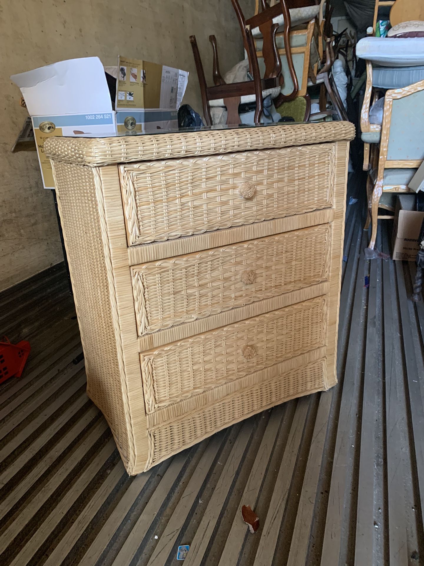 Wicker chest. Natural color with glass top very good condición. 36 inches tall. 36inches wide. 15 inches deep aprox.