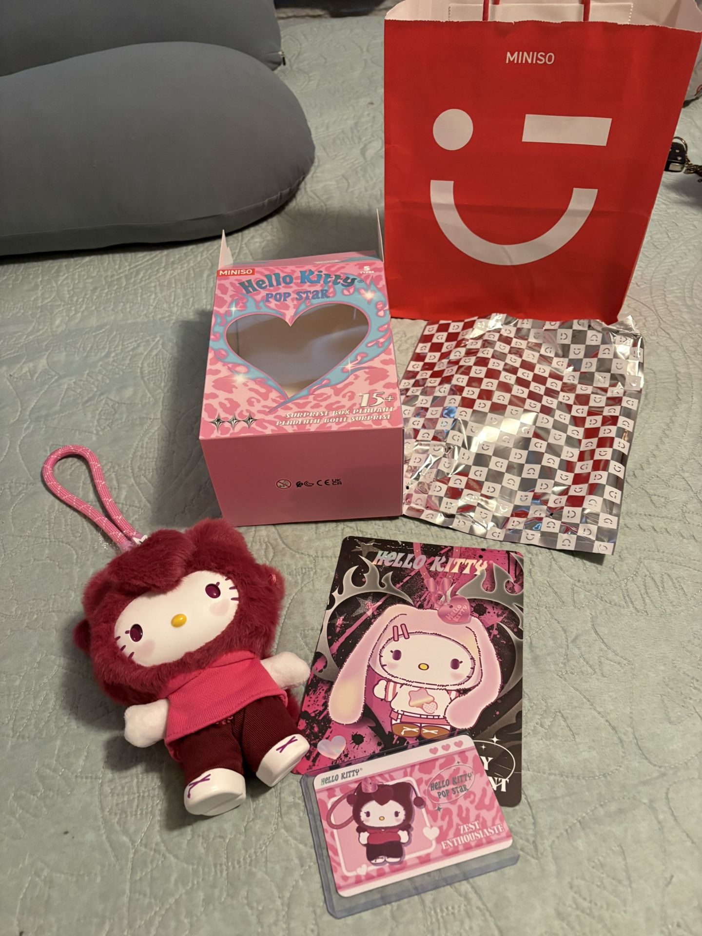 Brand new Hello Kitty “Zest” Popstar Plush Keychain. Opened bag, but tag is still attached! Placed description card in a top loader to protect. Retails at 29.99 plus tax.