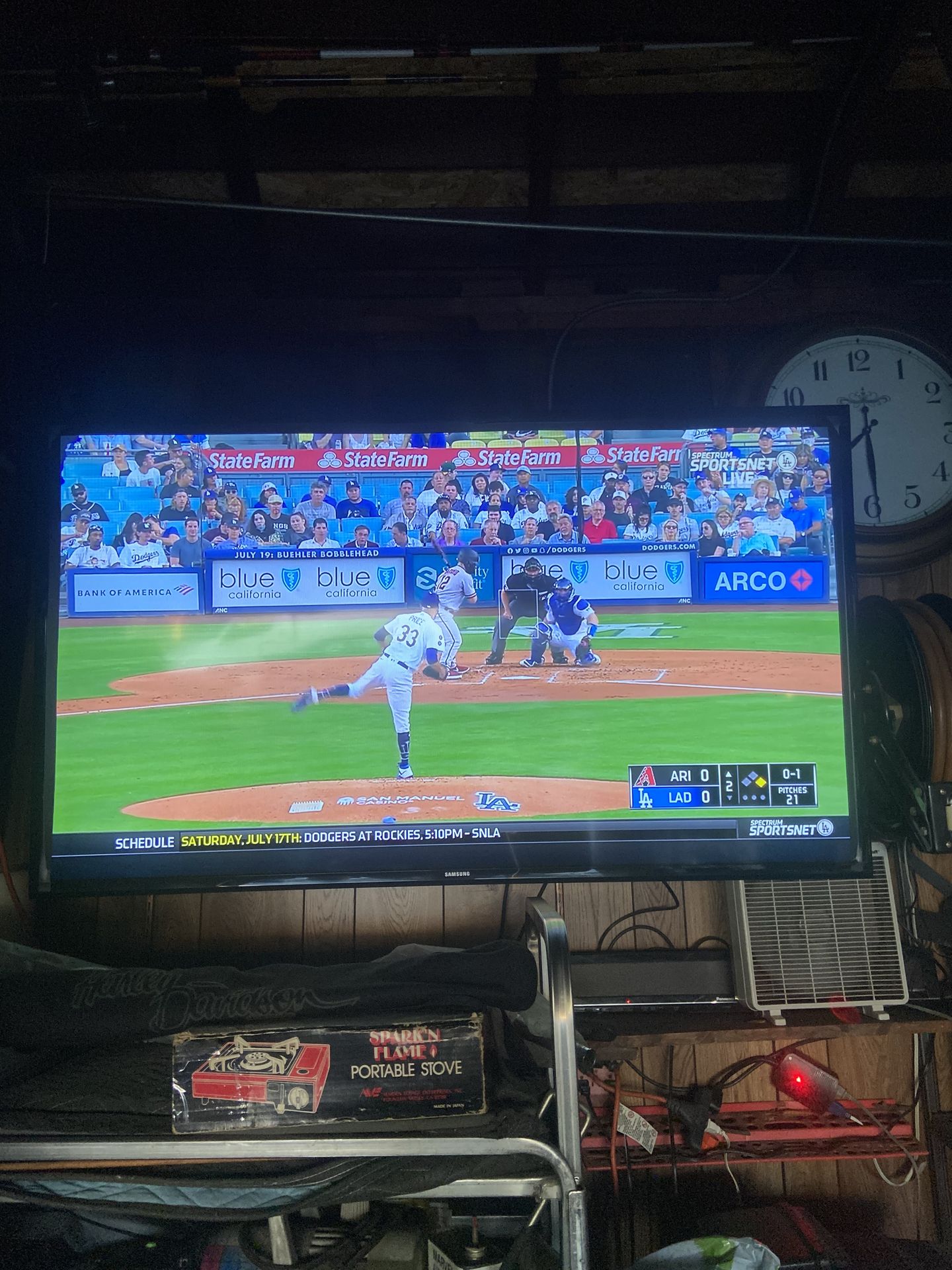 Samsung 60” tv works fine not a smart tv , look at the pictures around the edges of screen no stand and comes with remote