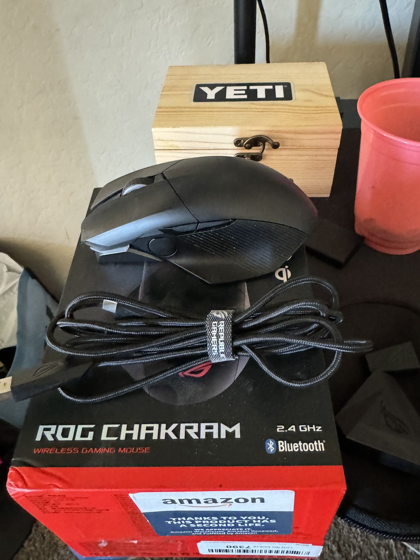 Asus wireless mouse . Used for a month for a week or two and bought a Razr mouse instead. Didn’t like the feel of it anymore. Price is negotiable went to sell asap