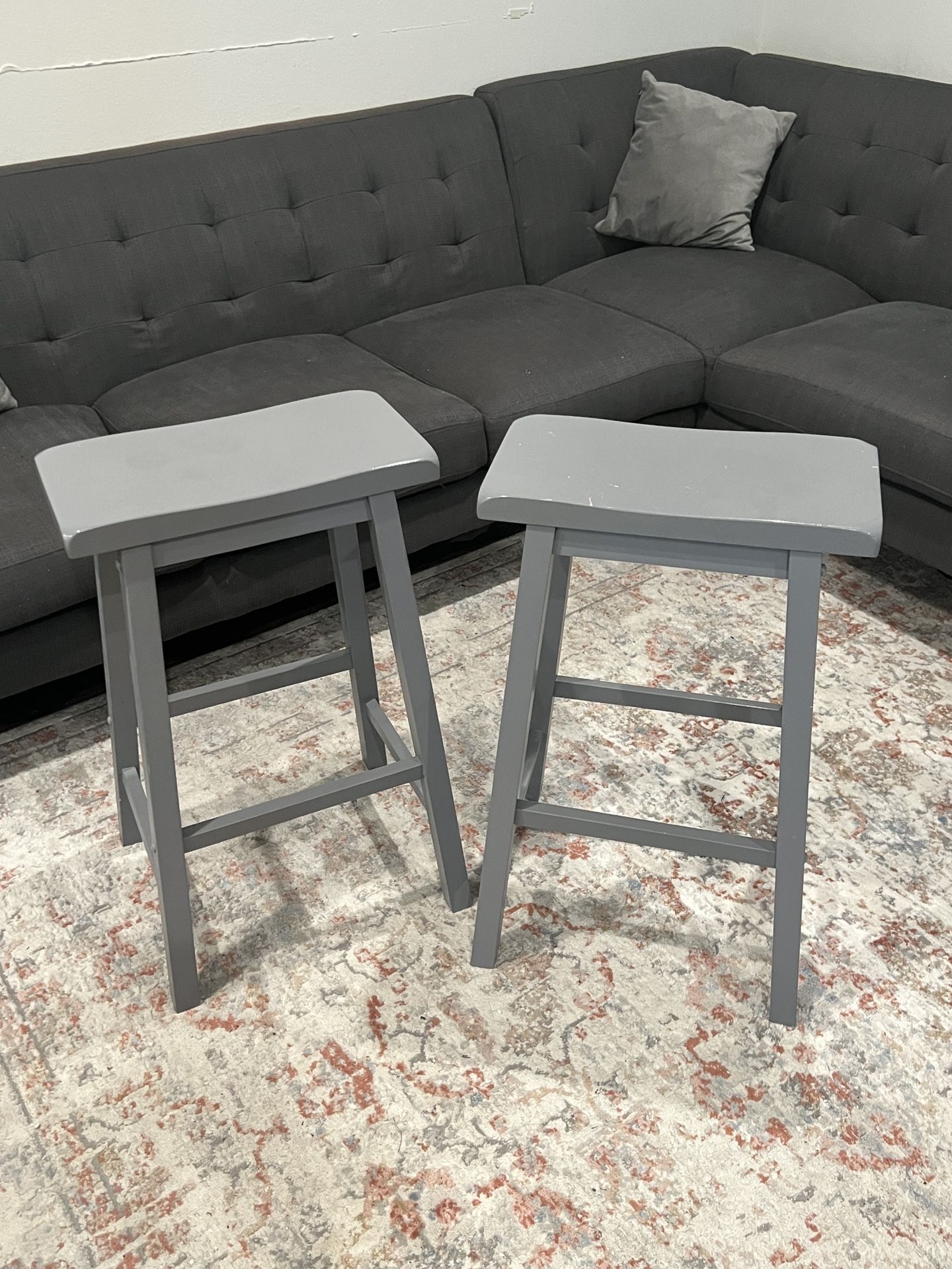 Moving sale - Selling everything 2 solid wood bar stools Grey $20 each $30 for both Also selling Bed Couch Dinner table and chairs Dresser Console Night stand Side table Santa Monica near promenade Pickup by Wednesday
