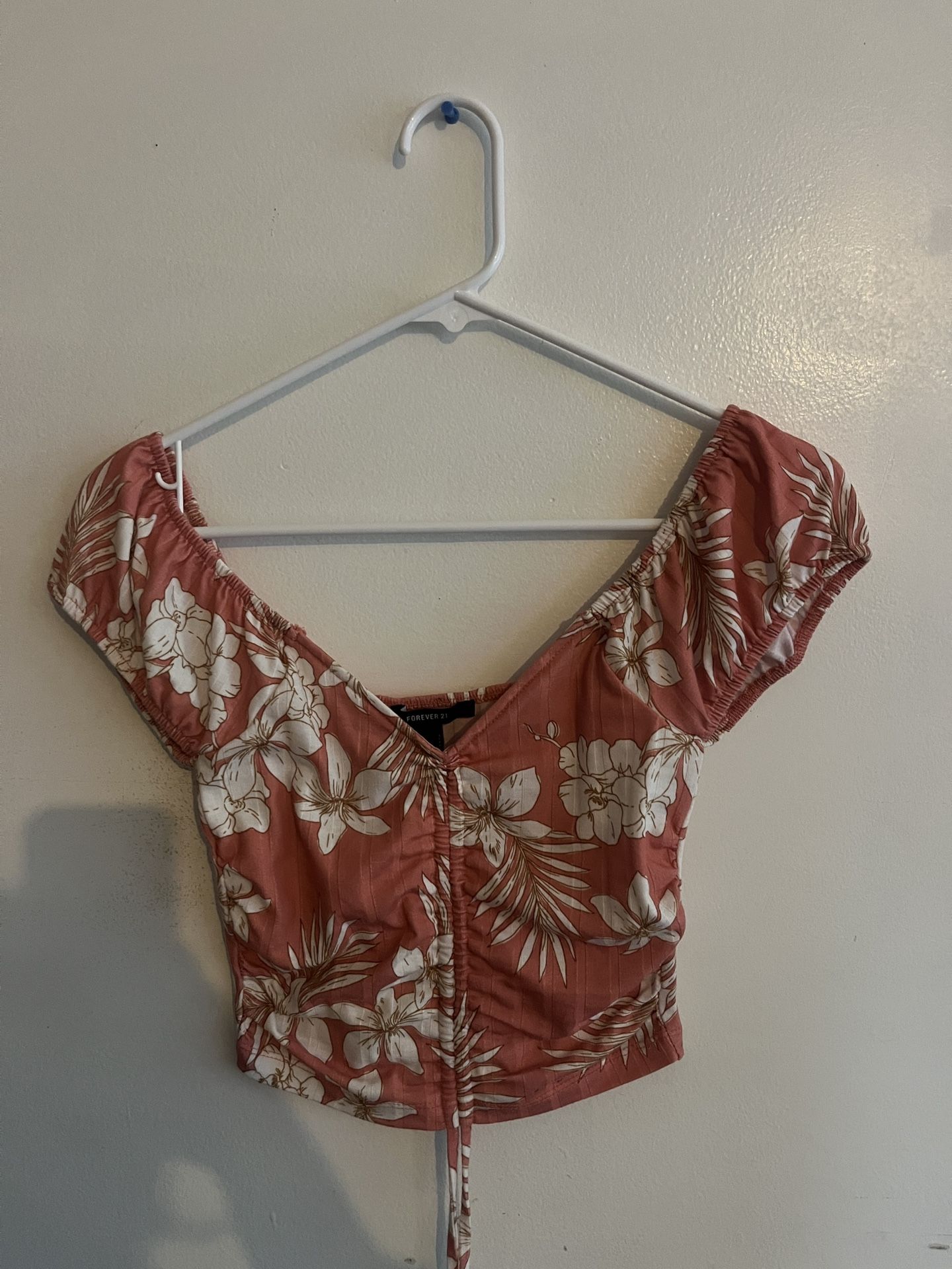 Orange tank top with white flowers, size small and adjustes how high you’d like.
