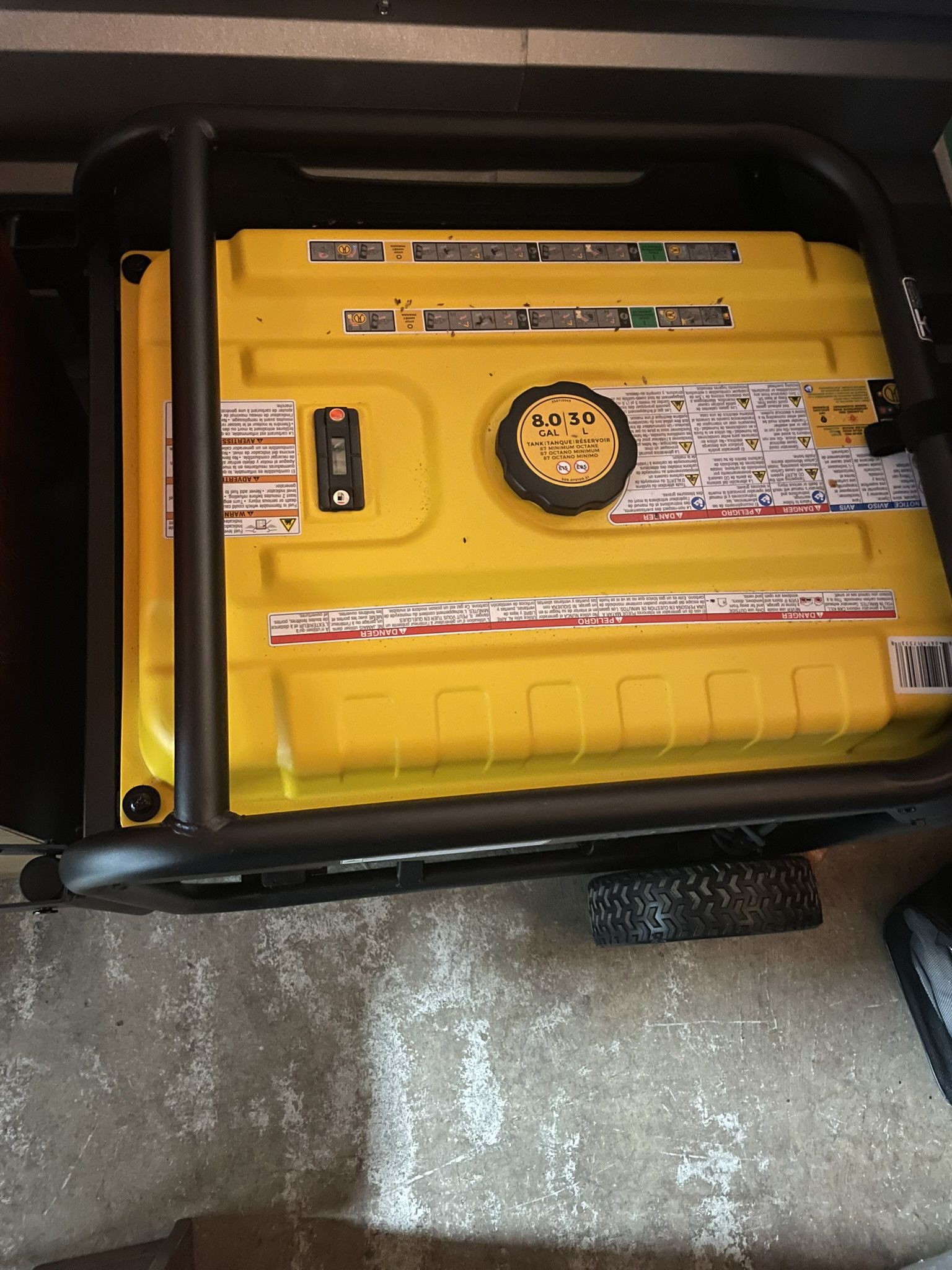 Model # HO7553 Gas/propane fuel. Cover, all paperwork and a box of parts for generator. This was used 4 times when we lived in Louisiana. It’s loud but it works well. Our neighborhood just forbade the use of these generators so we’re selling it. Please note that due to our cross-country move, we could not bring the propane tank or gas can that we had for the generator. So if you want to test it out, you’ll need to bring fuel.