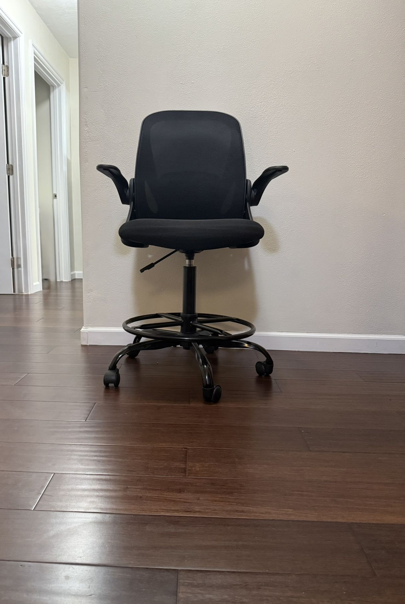 $70 Like New Tall Adjustable Office Chair Included photo of Amazon posting and pulled up to a table for comparison. Like new condition Dimensions listed in photo