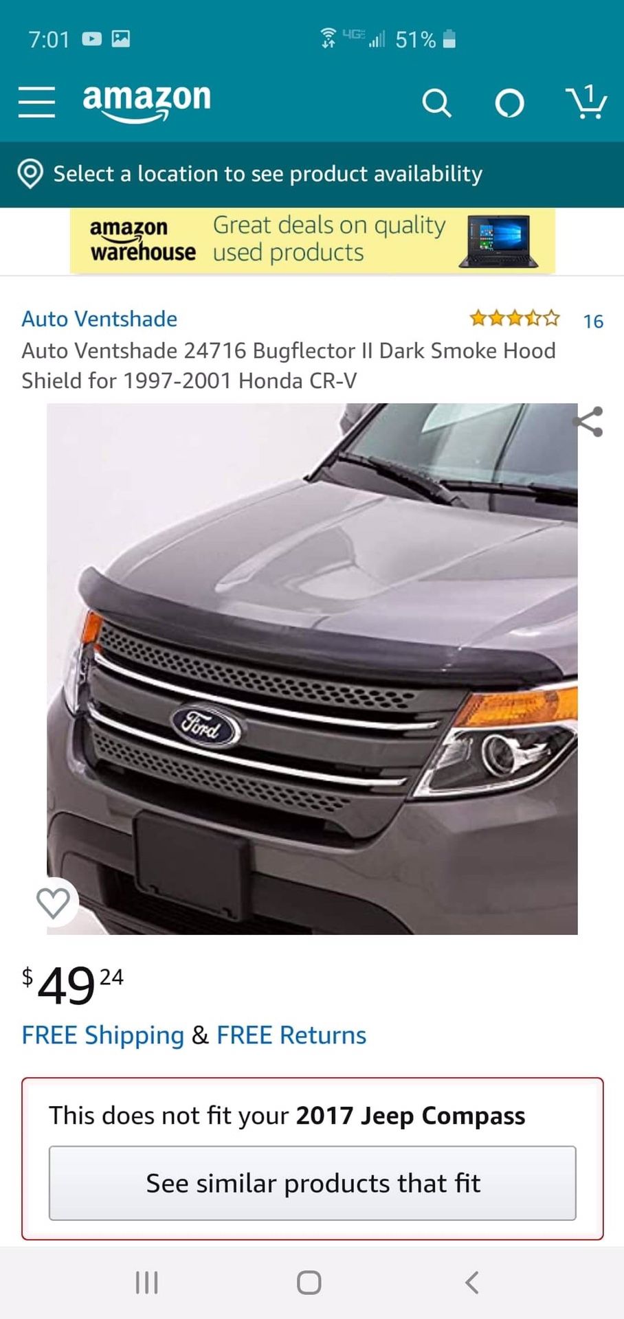 Auto Ventshade 24716 Bugflector II Dark Smoke Hood Shield for 1997-2001 Honda CR-V