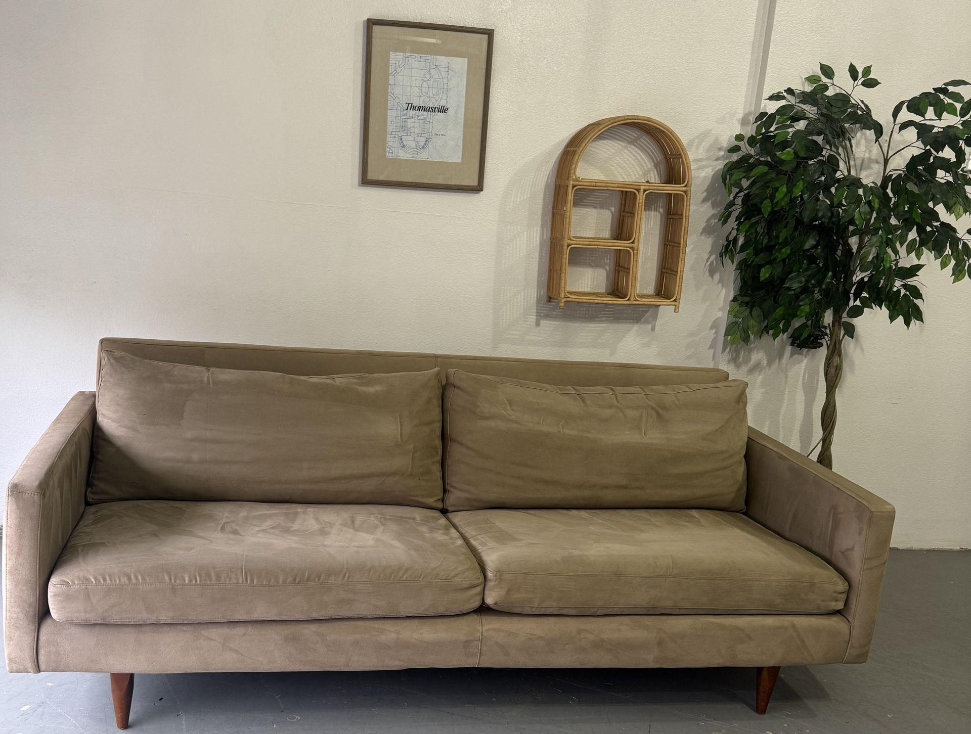 Room & Board velvet sofa in great shape overall. Velvet material easy to maintain clean. I can help load or offer Delivery. Measurements 86 inches Wide 33 inches Tall 39 inches Deep