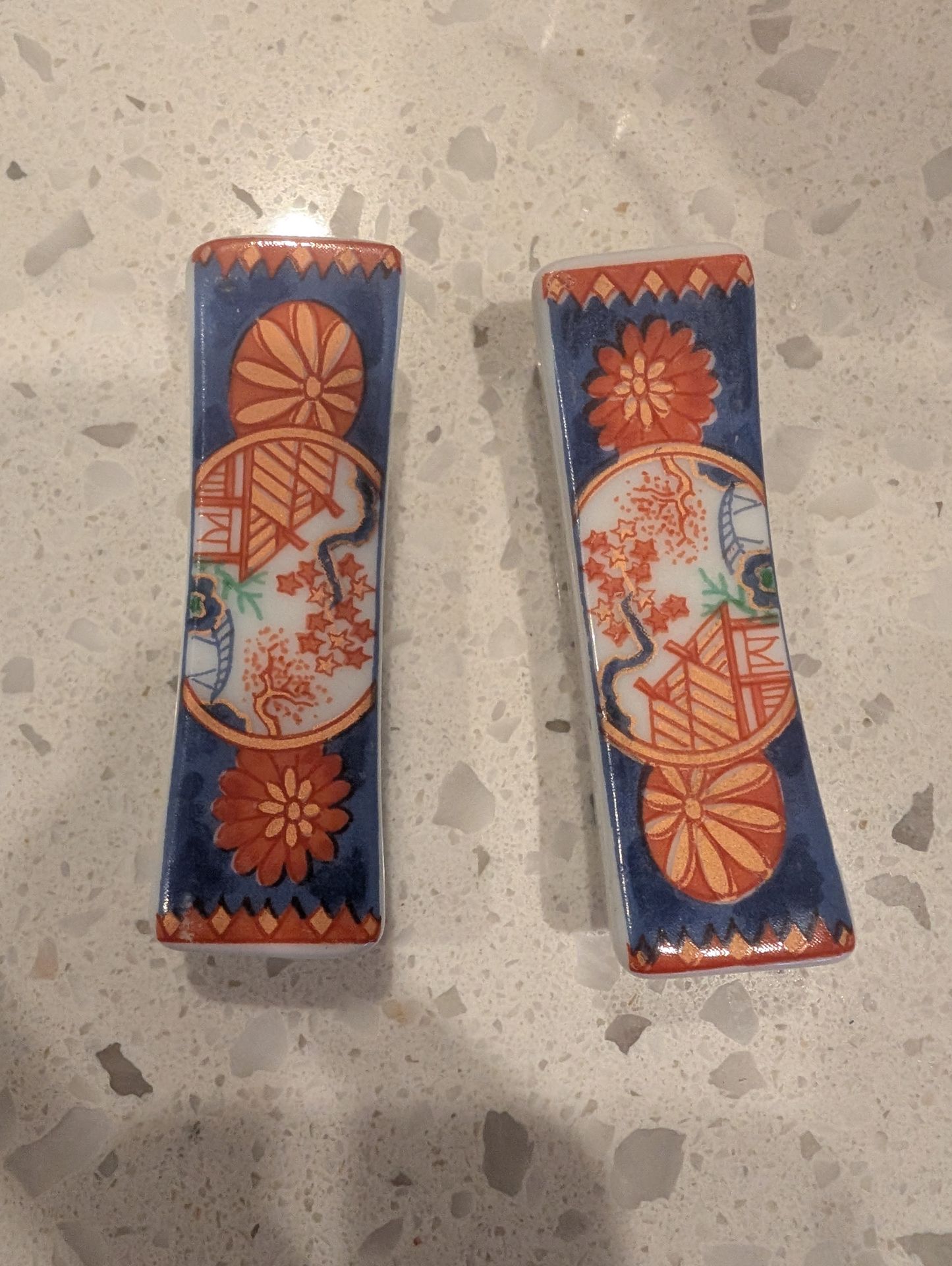 A pair of ceramic chopstick stands