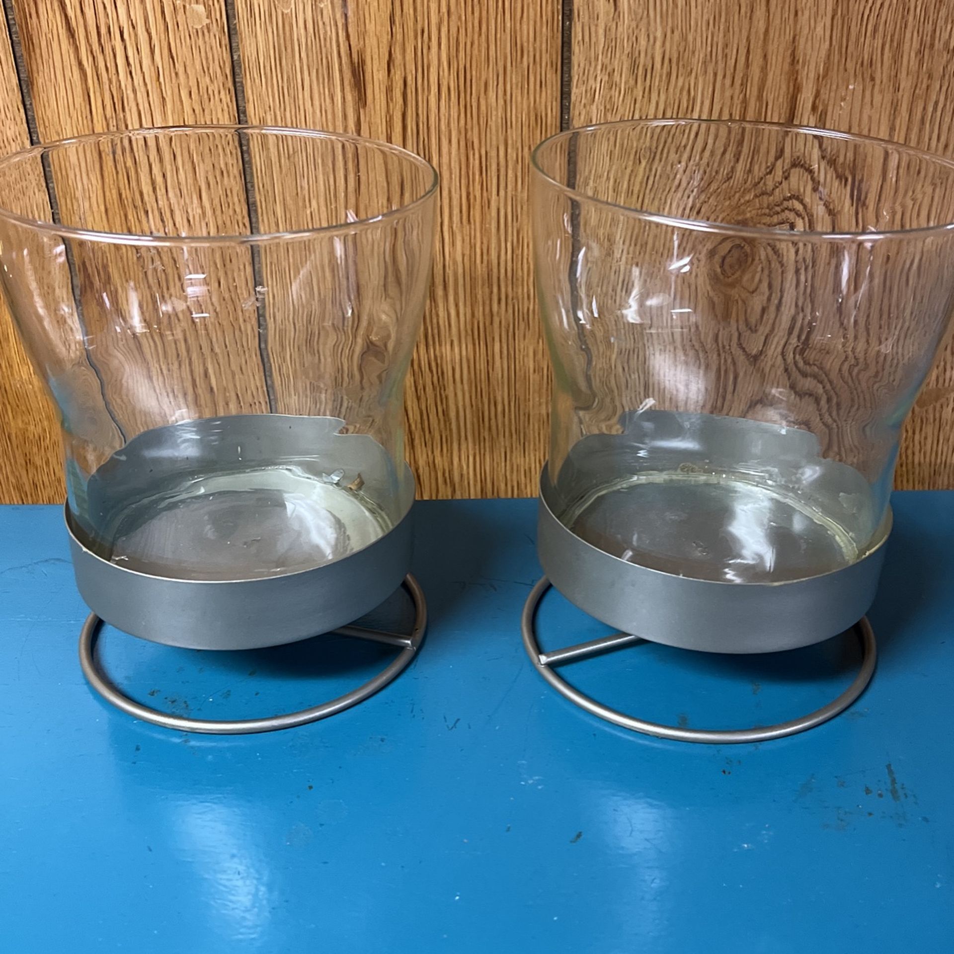 2 PCs 7.5” by 6” Clear Glass Candle Holders w/ Silver Metal Stand